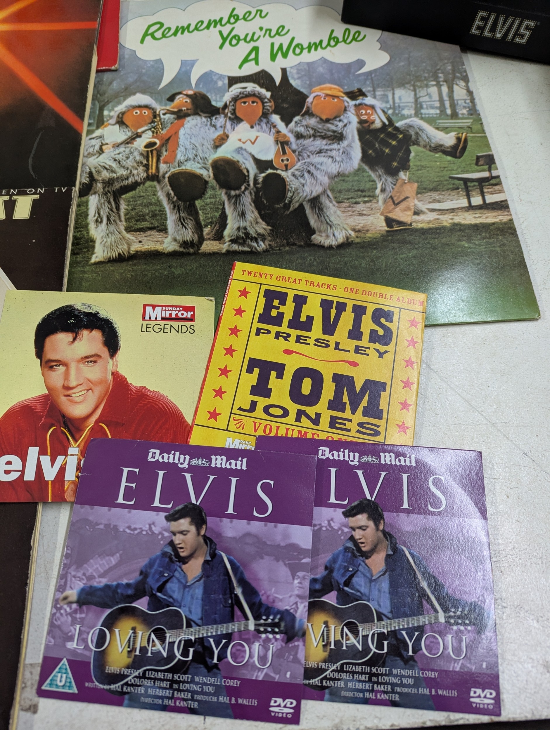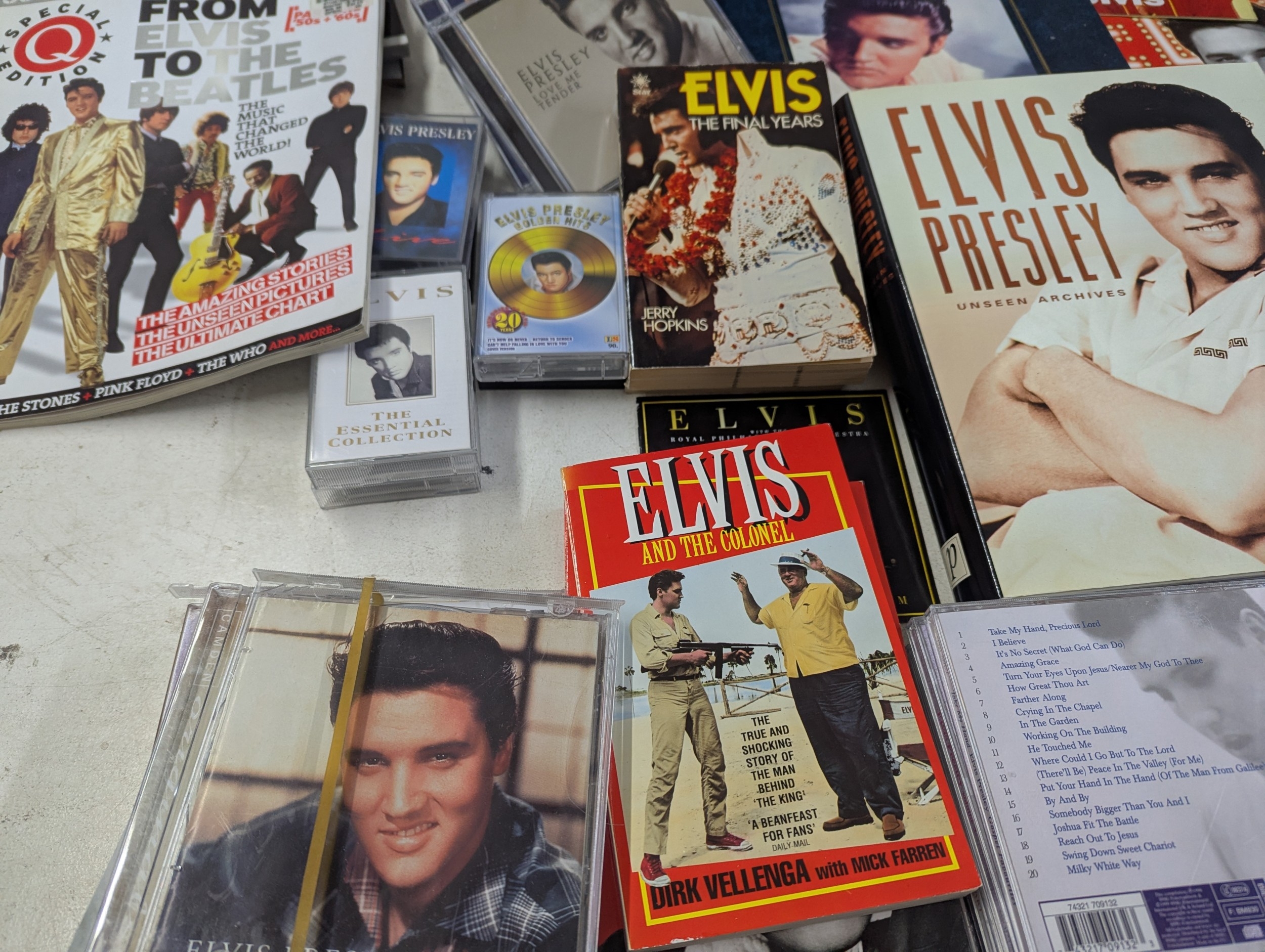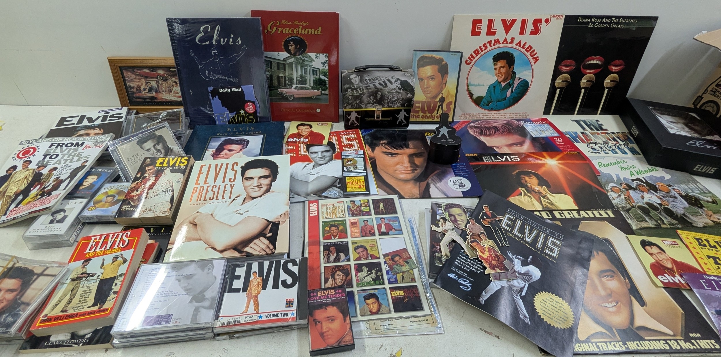 Elvis Presley memorabilia to include CDs, cassette tapes, records, fridge magnets and others
