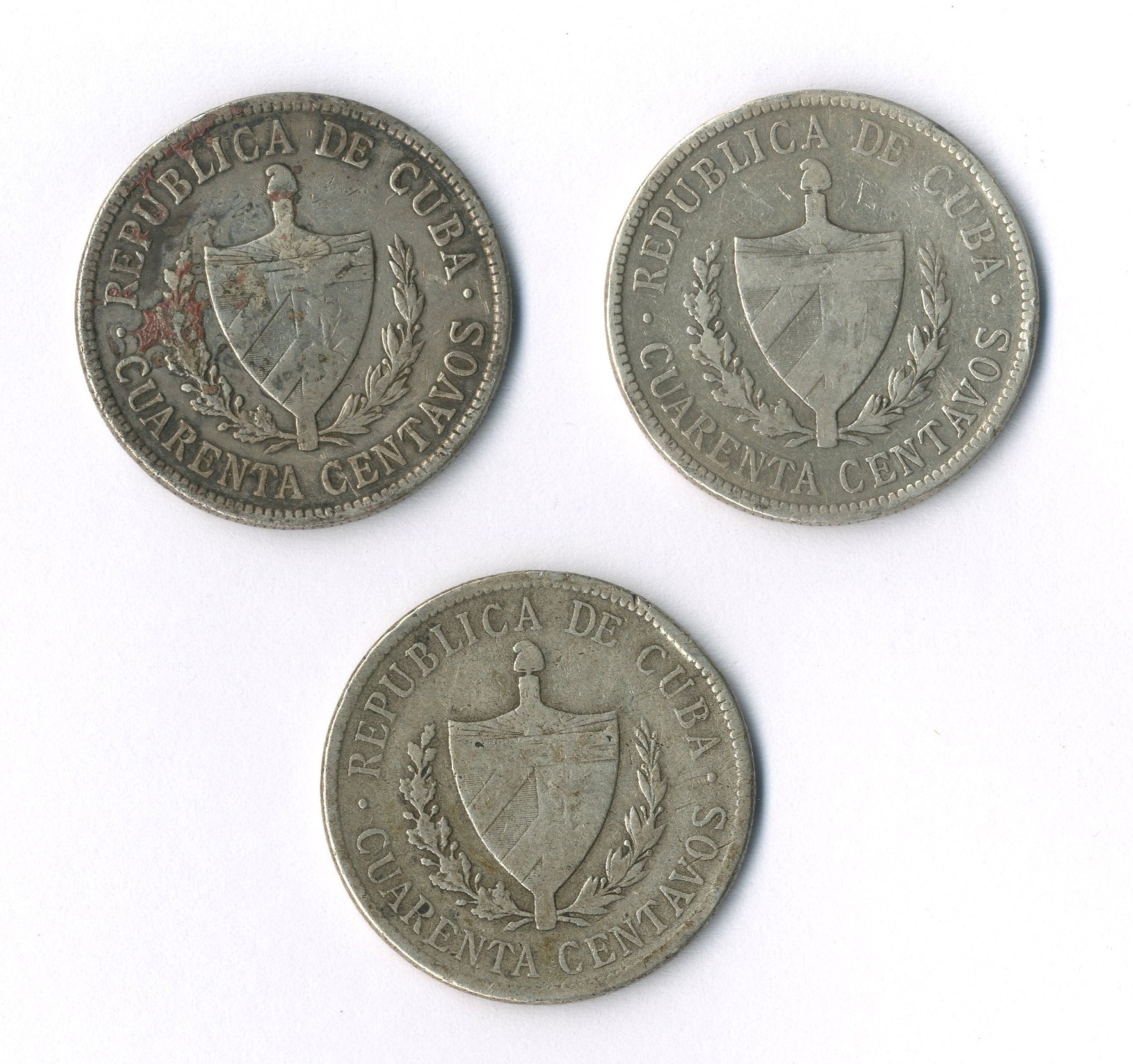 Cuba, a group of 3 x 40 centavos, 1915, 1916 and 1920, generally fine.