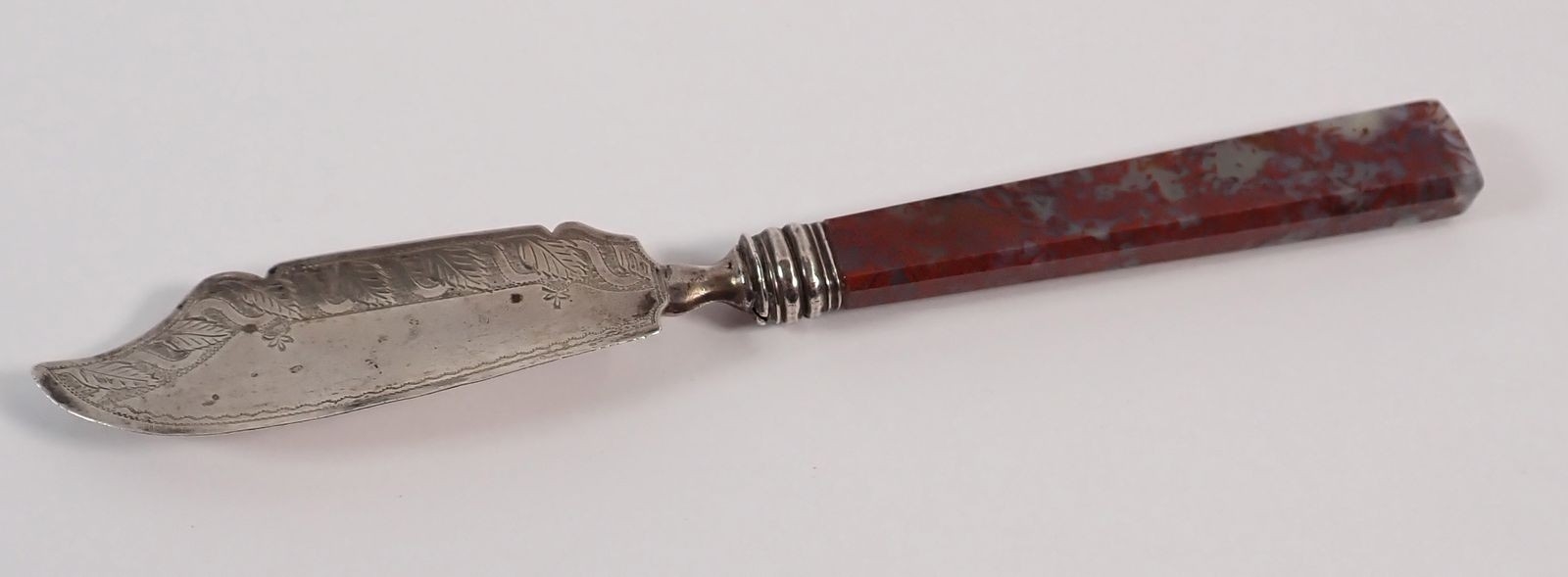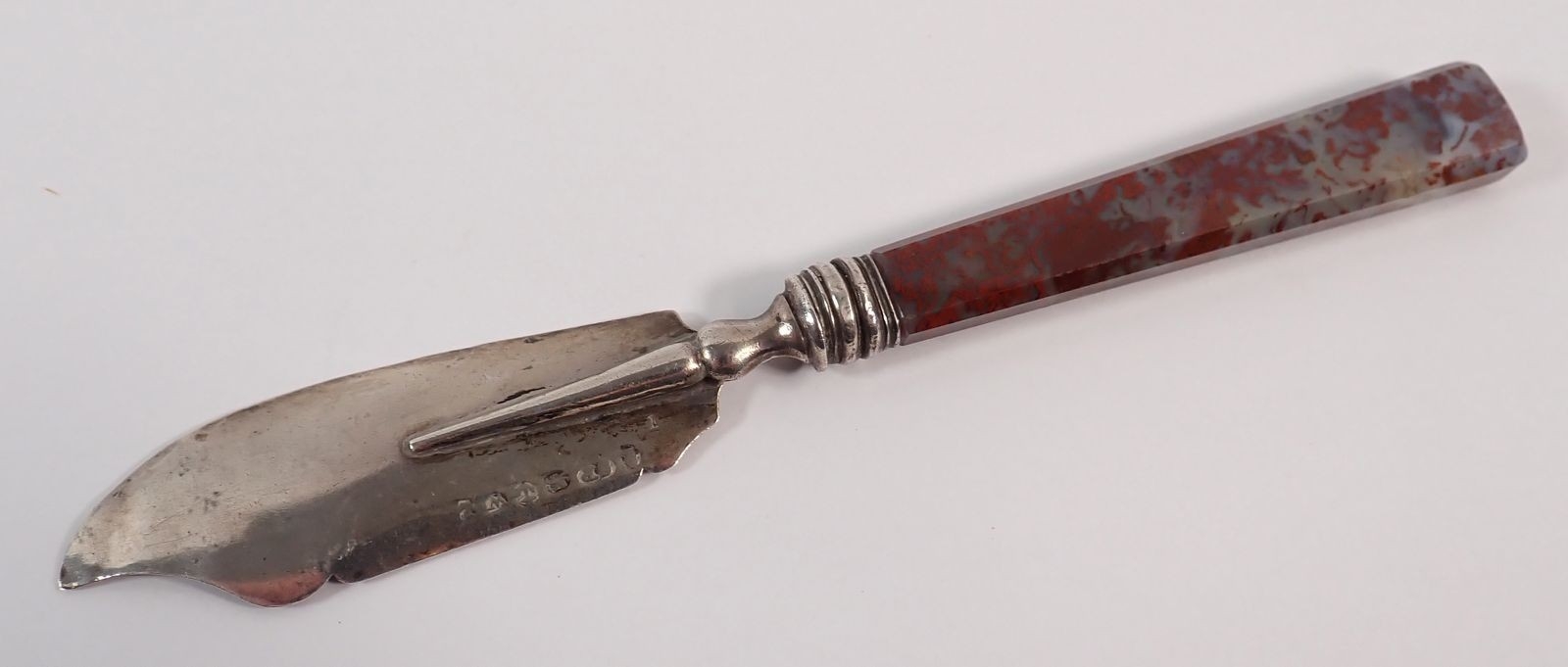A George III silver butter knife with marble handle by Samuel Pemberton, Birmingham, 17.5cm