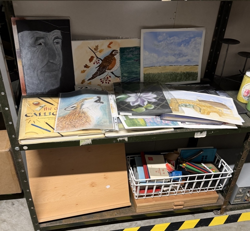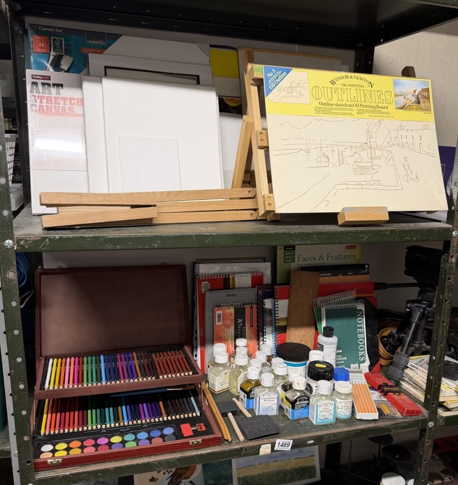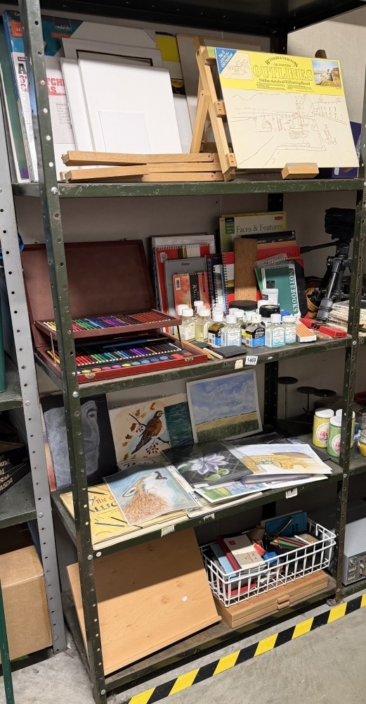 A good lot of art material on 4 shelves