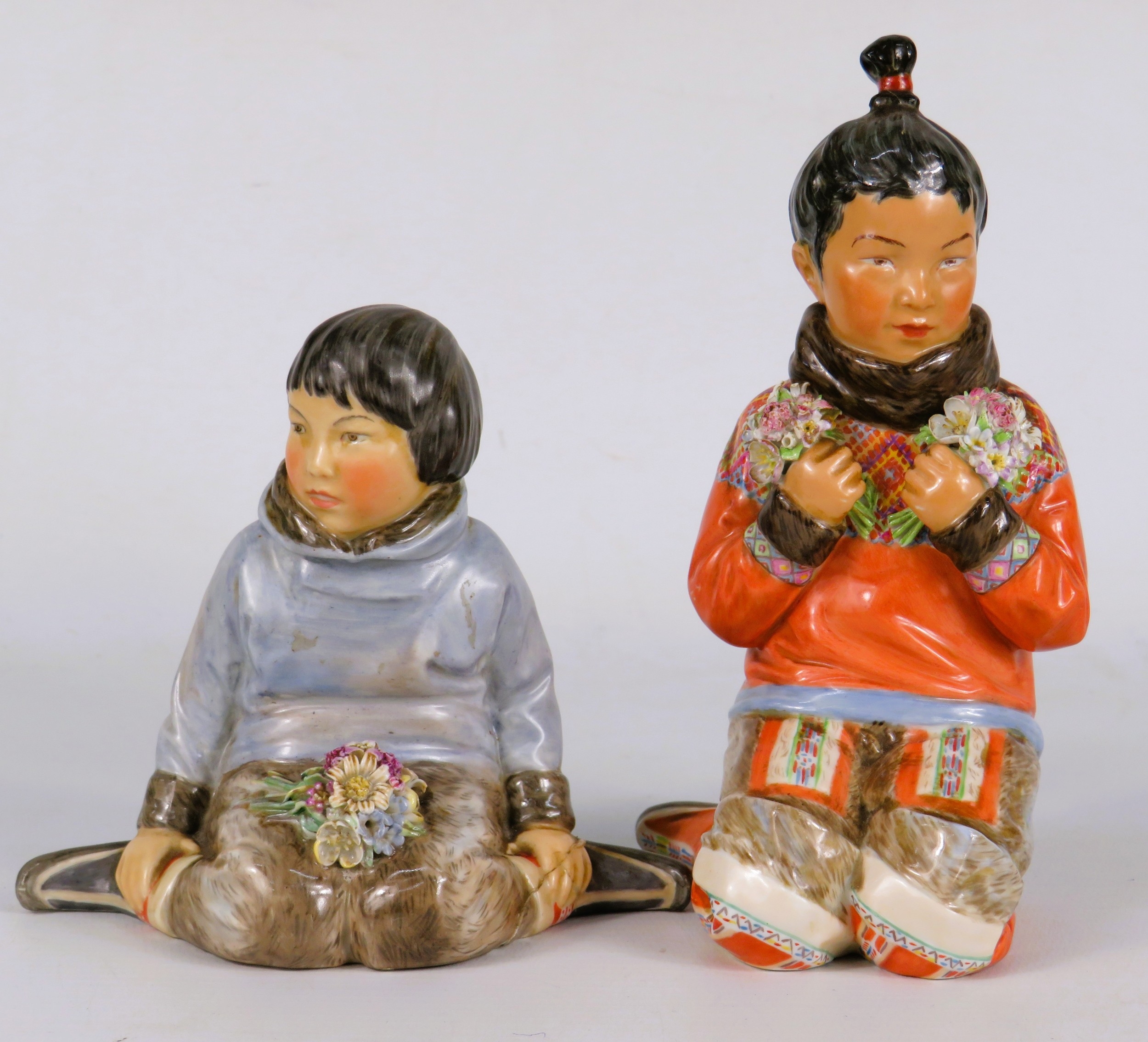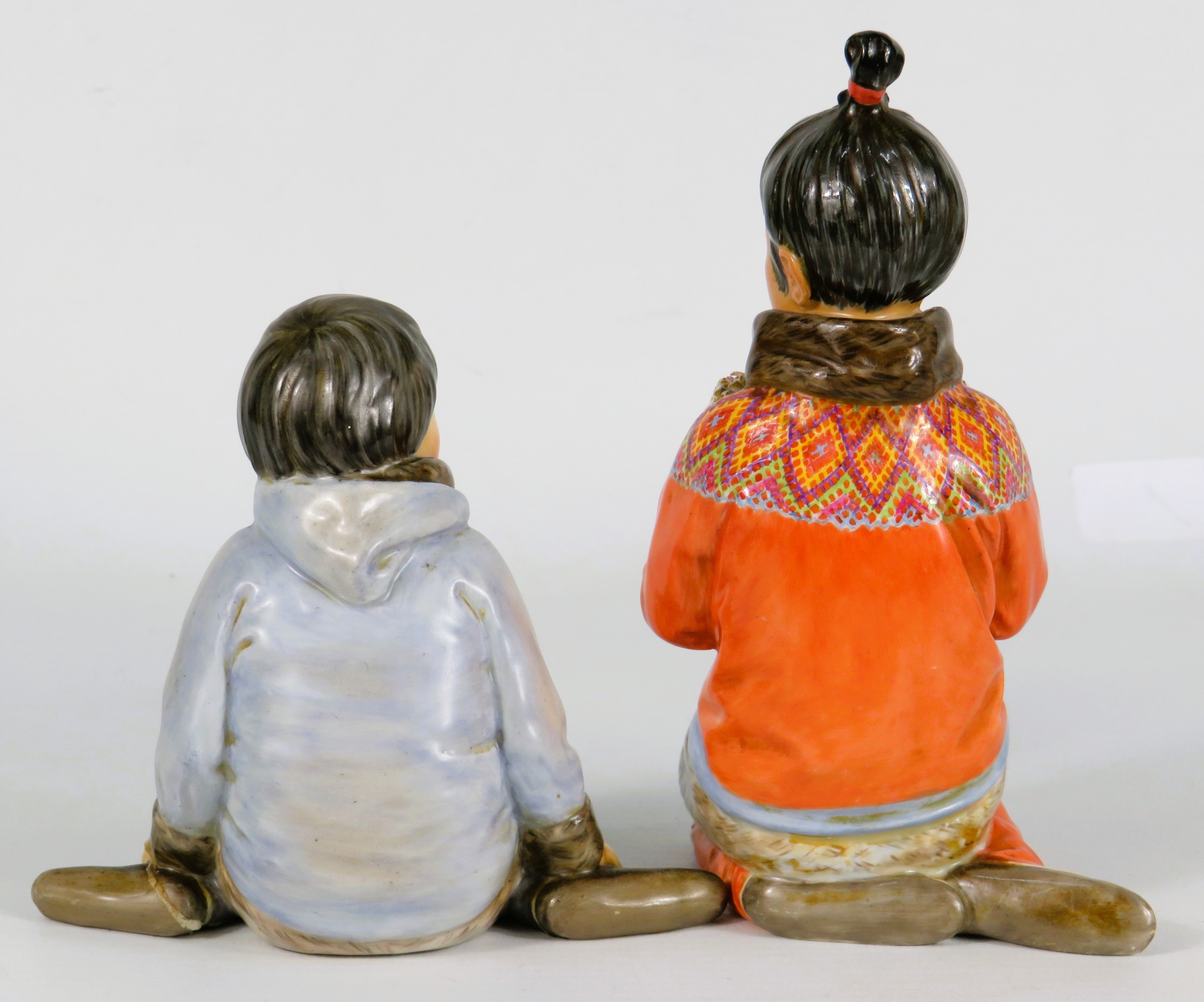 Two Royal Copenhagen Inuit Child Figurines - Tallest 15cm (Smallest A/F - Repair to Hand/Foot)