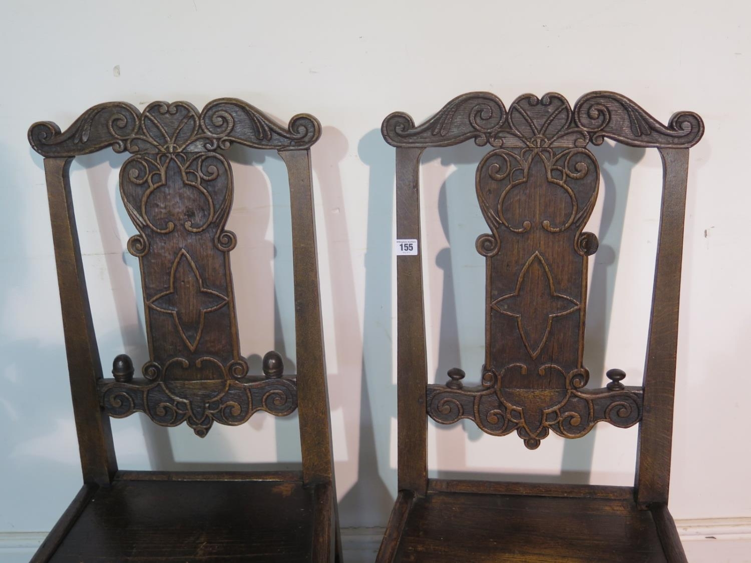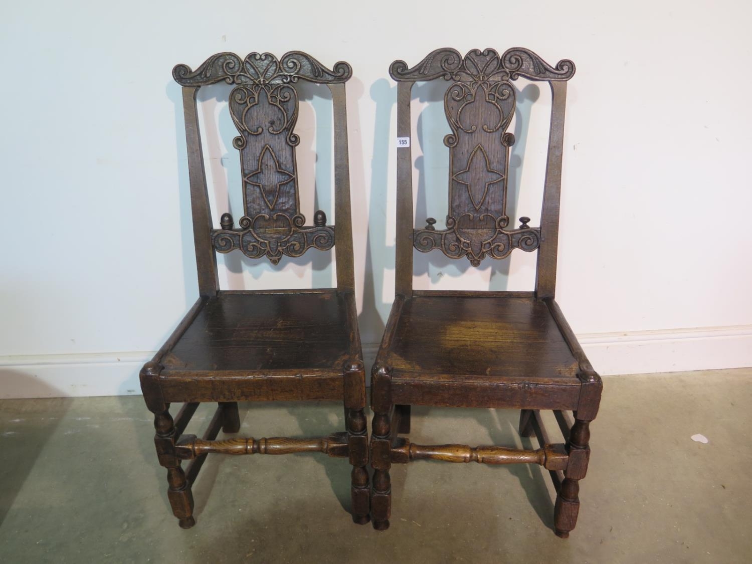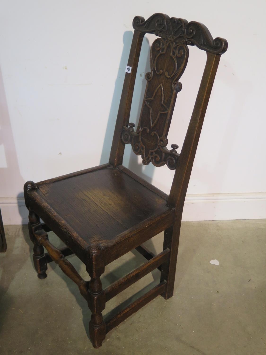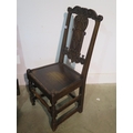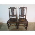 A pair of 18th century carved oak chairs, with solid seats, 100cm tall