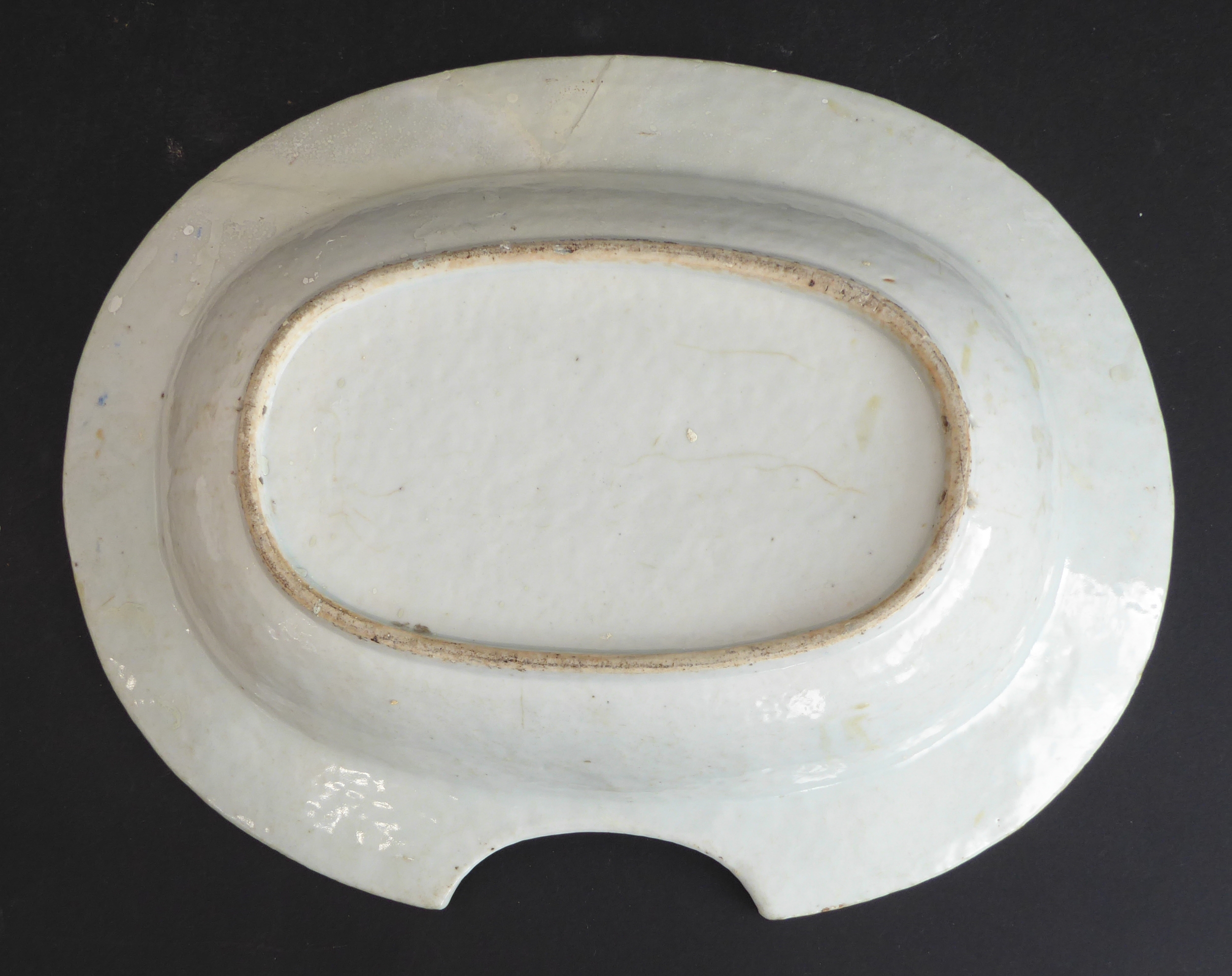 An 18th century Chinese porcelain barber's bowl of oval form...