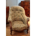 A VICTORIAN WALNUT TUB ARMCHAIR