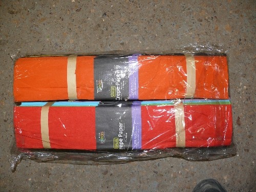 3 BOXES OF BRIGHT IDEAS CREPE PAPER ASSORTED COLOURS, PACKS OF 12. 50cm X 200cm, 4 x PACKS PER BOX.