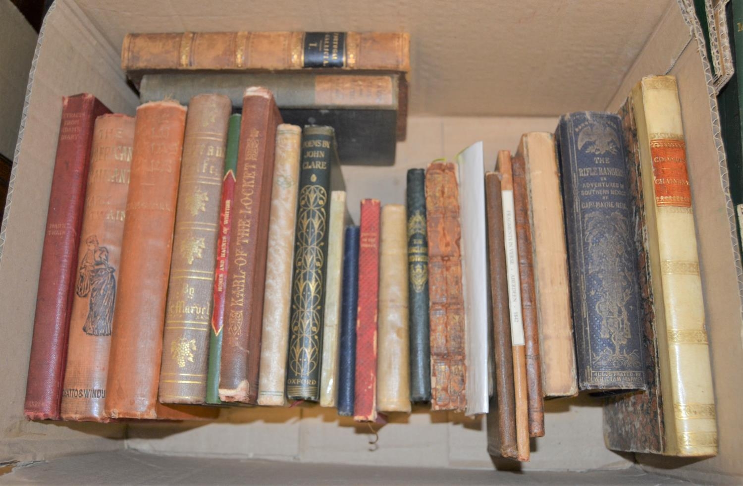 Collection of approximately twenty volumes of the 19th and 20th Century, includes Mark Twain, J. Fenimore Cooper, Captain Mayne Reid etc.