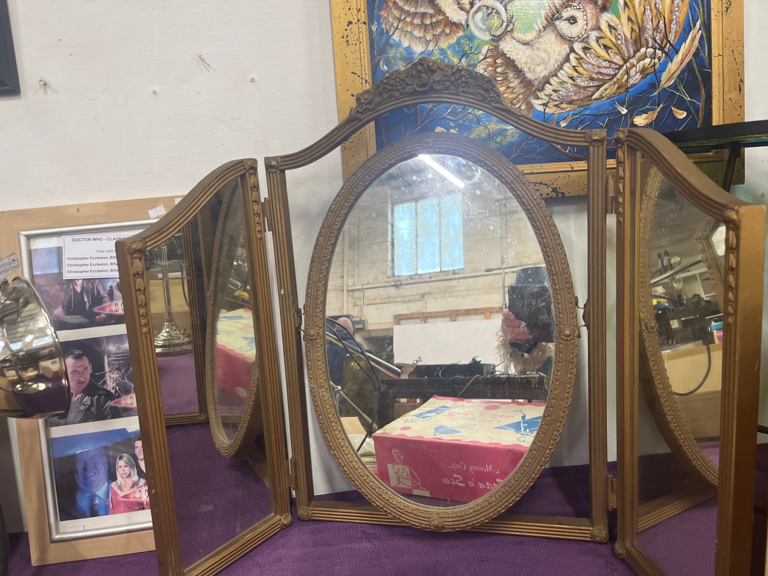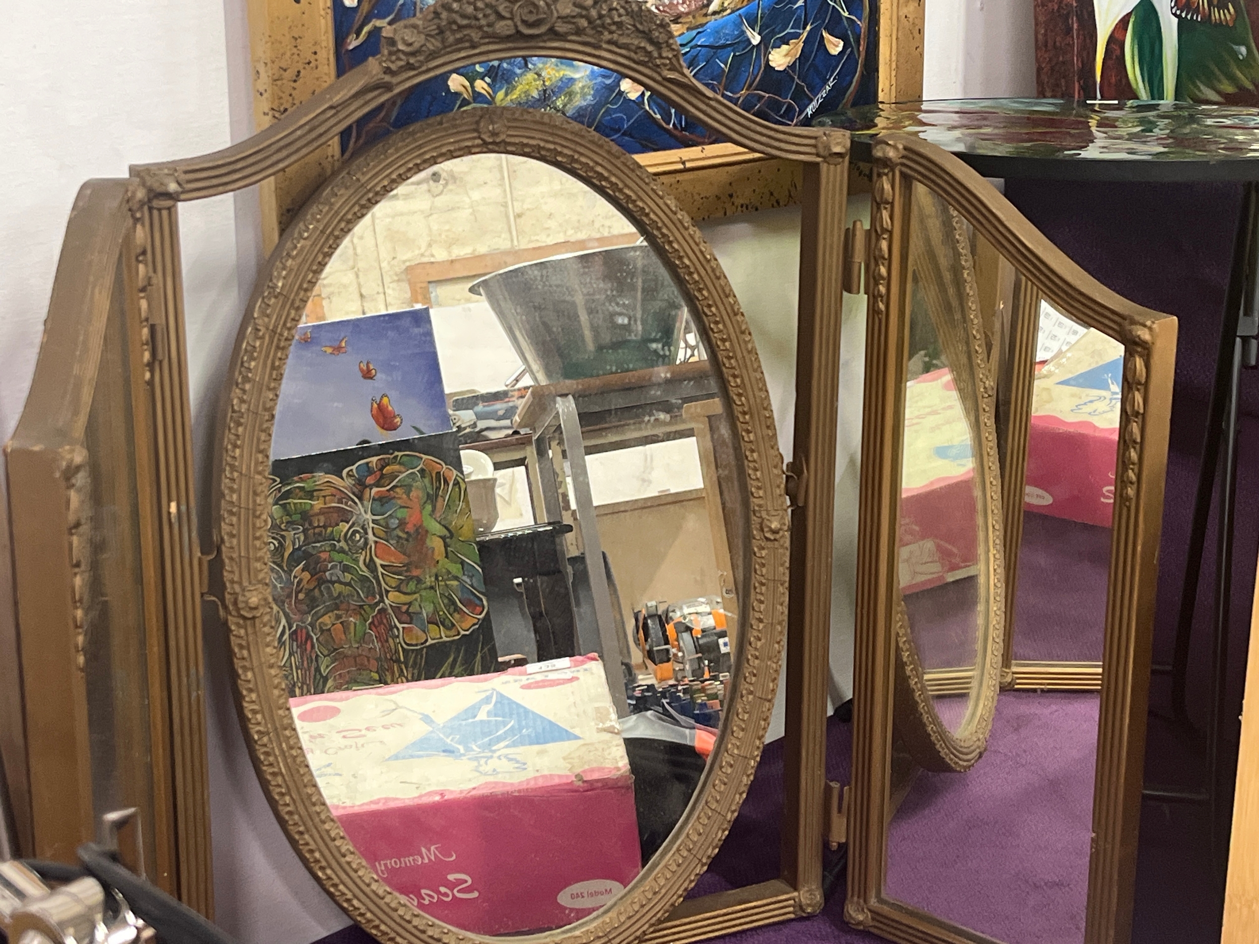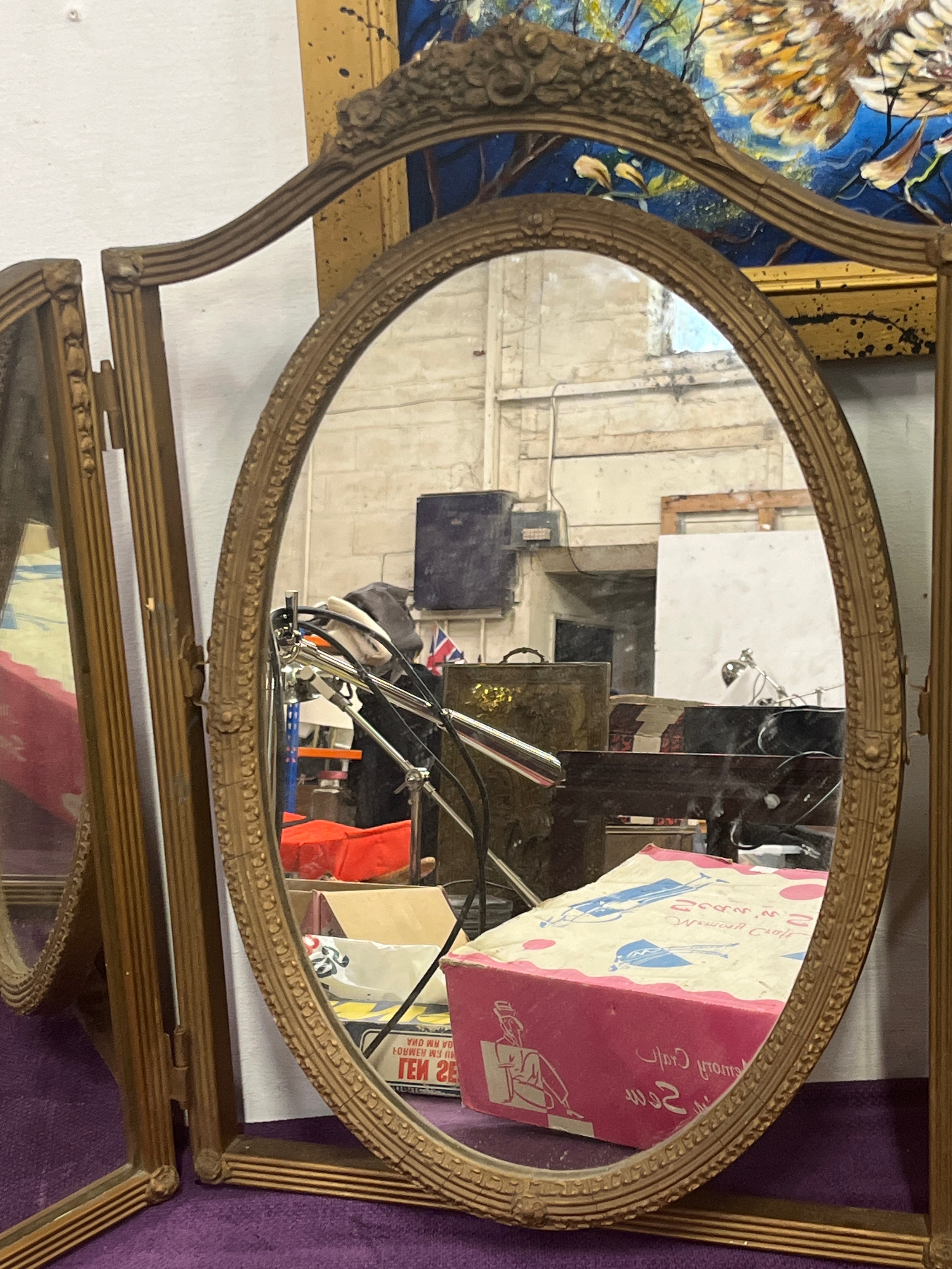 Large Ornate triple folding mirror with tilting oval centre ...