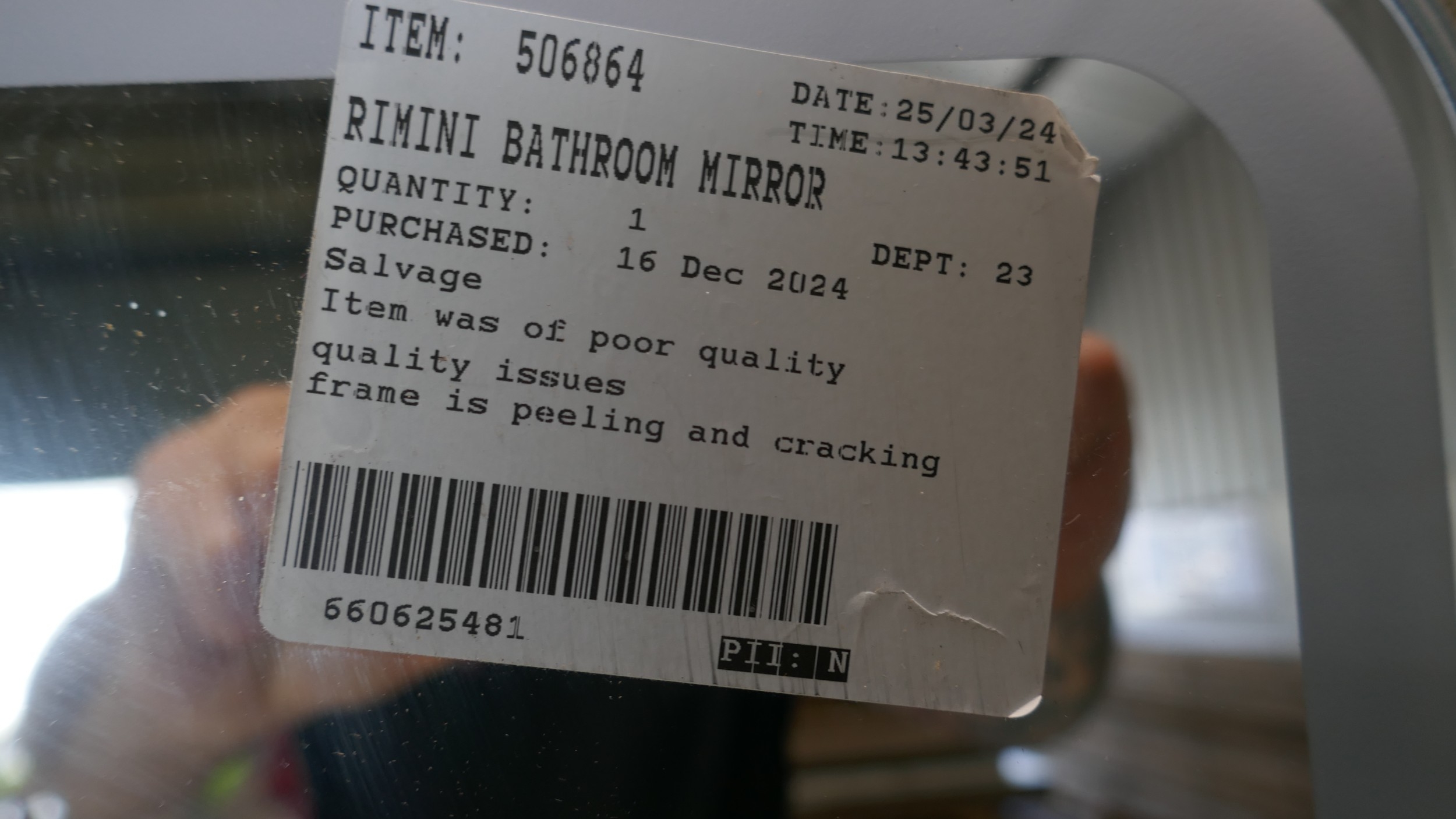 Roper Rhodes bathroom mirror (damaged) (358-307) *This lot is subject to VAT