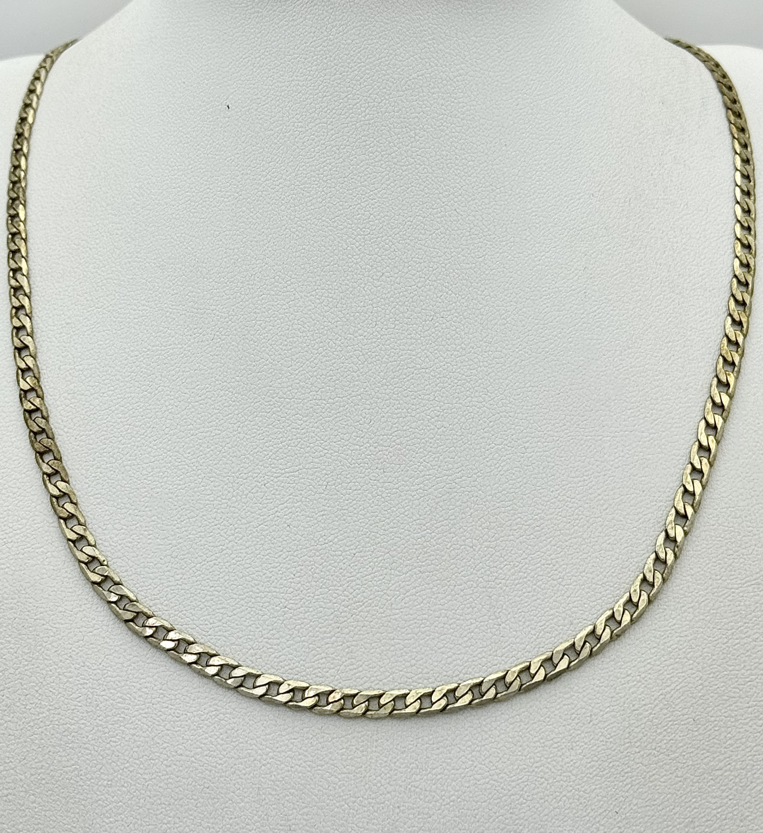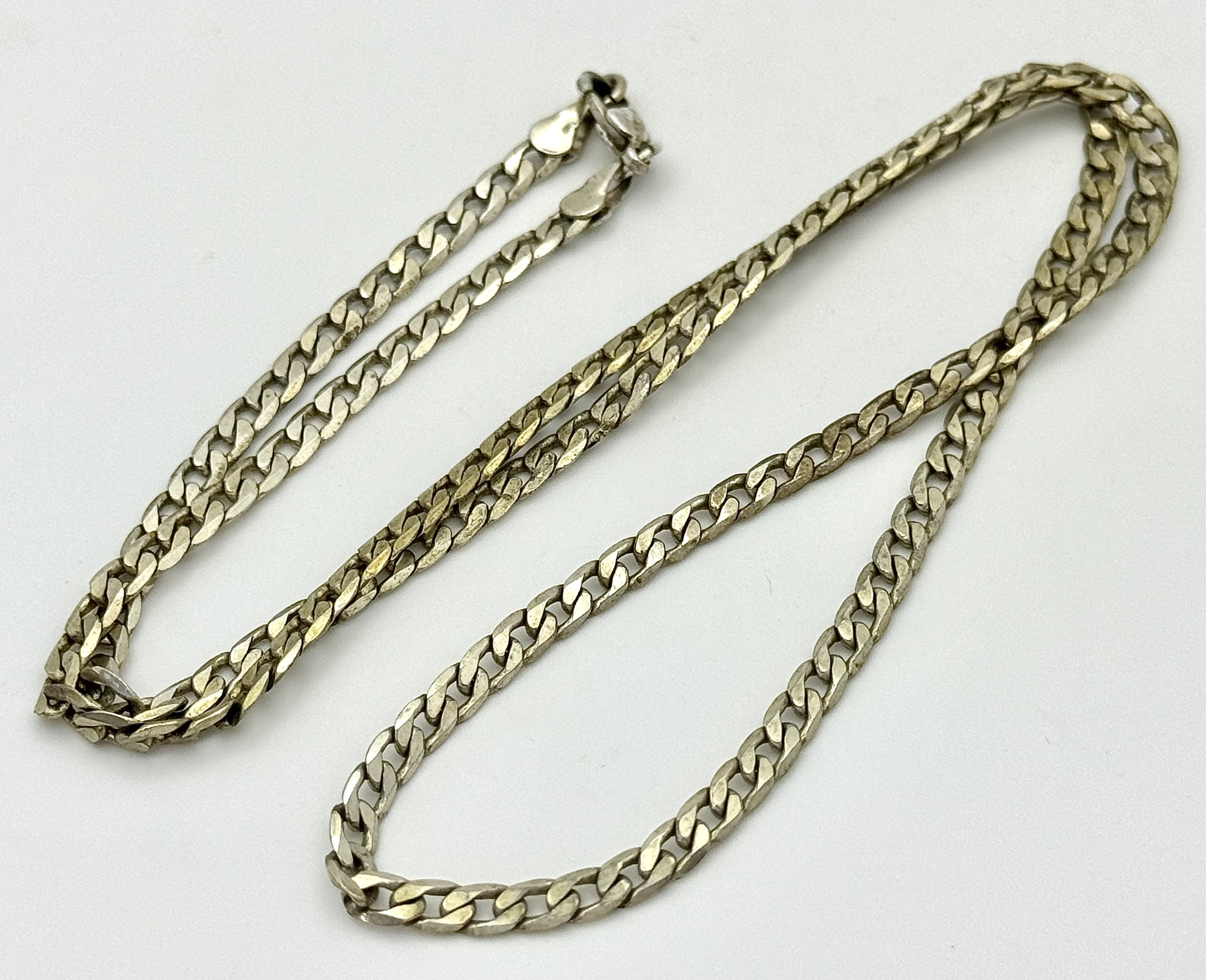 A vintage sterling silver curb link necklace. Total weight 13G. Total length 62cm.