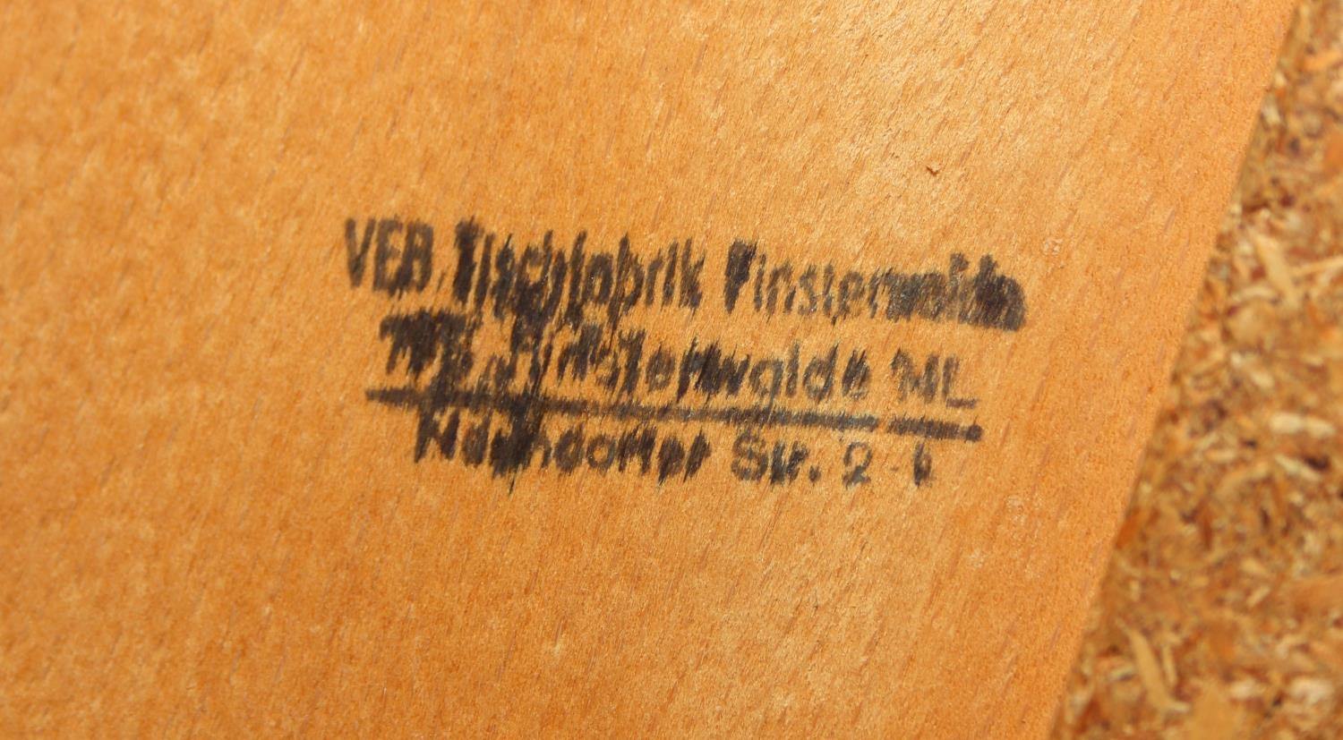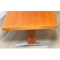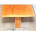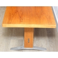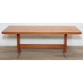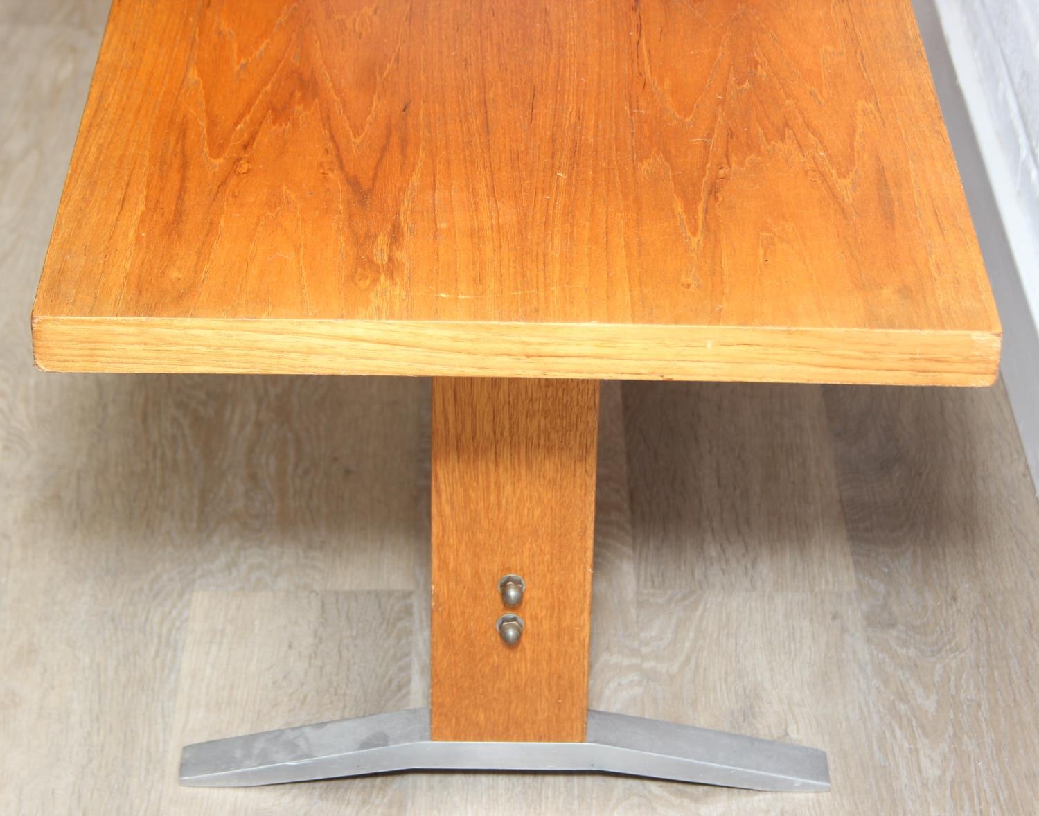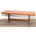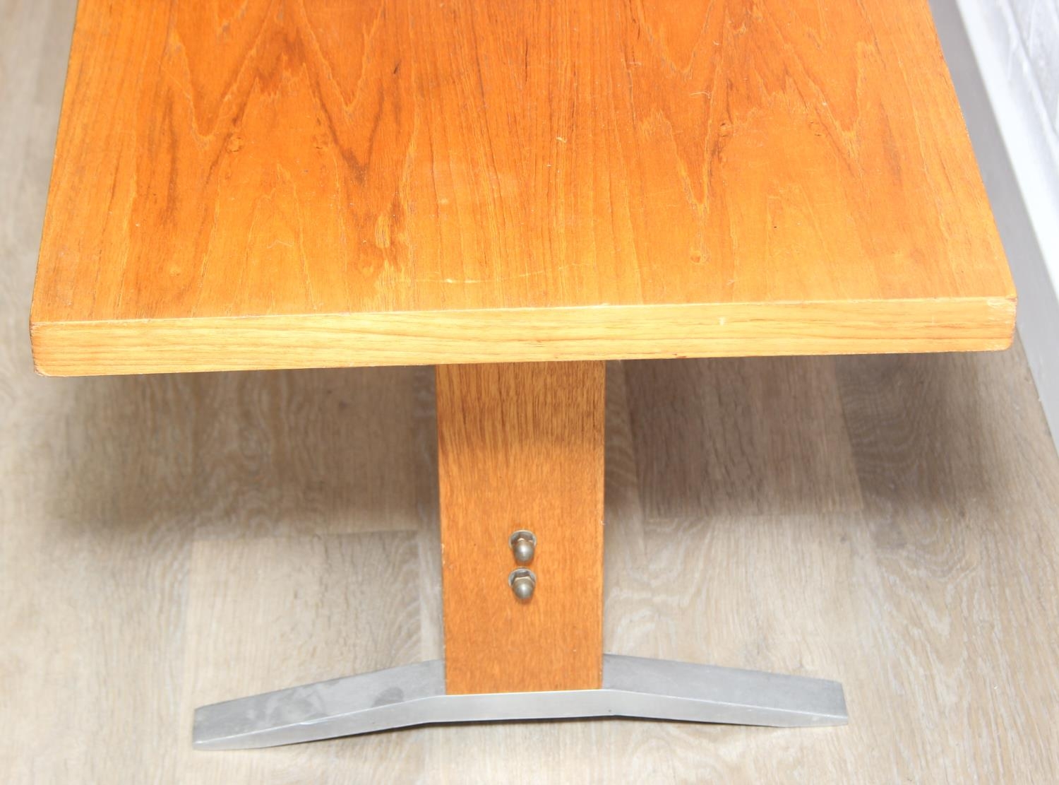 A retro Dutch low side table with metal feet, marked under, 120cm x 49cm x 45cm