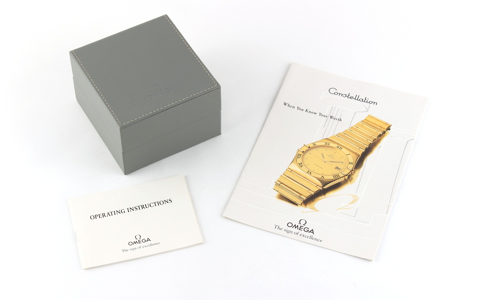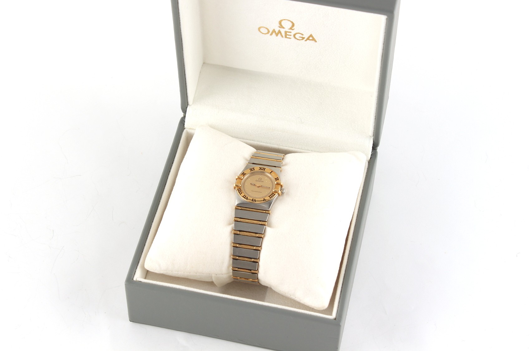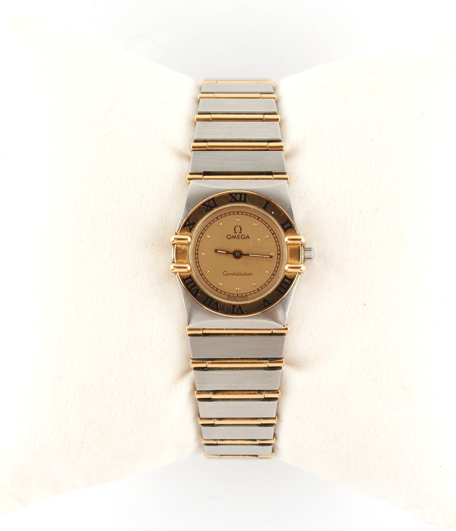 Property of a gentleman - a lady's Omega Constellation bi-metallic wristwatch on matching bracelet strap, in original box with instruction booklet and related leaflet.