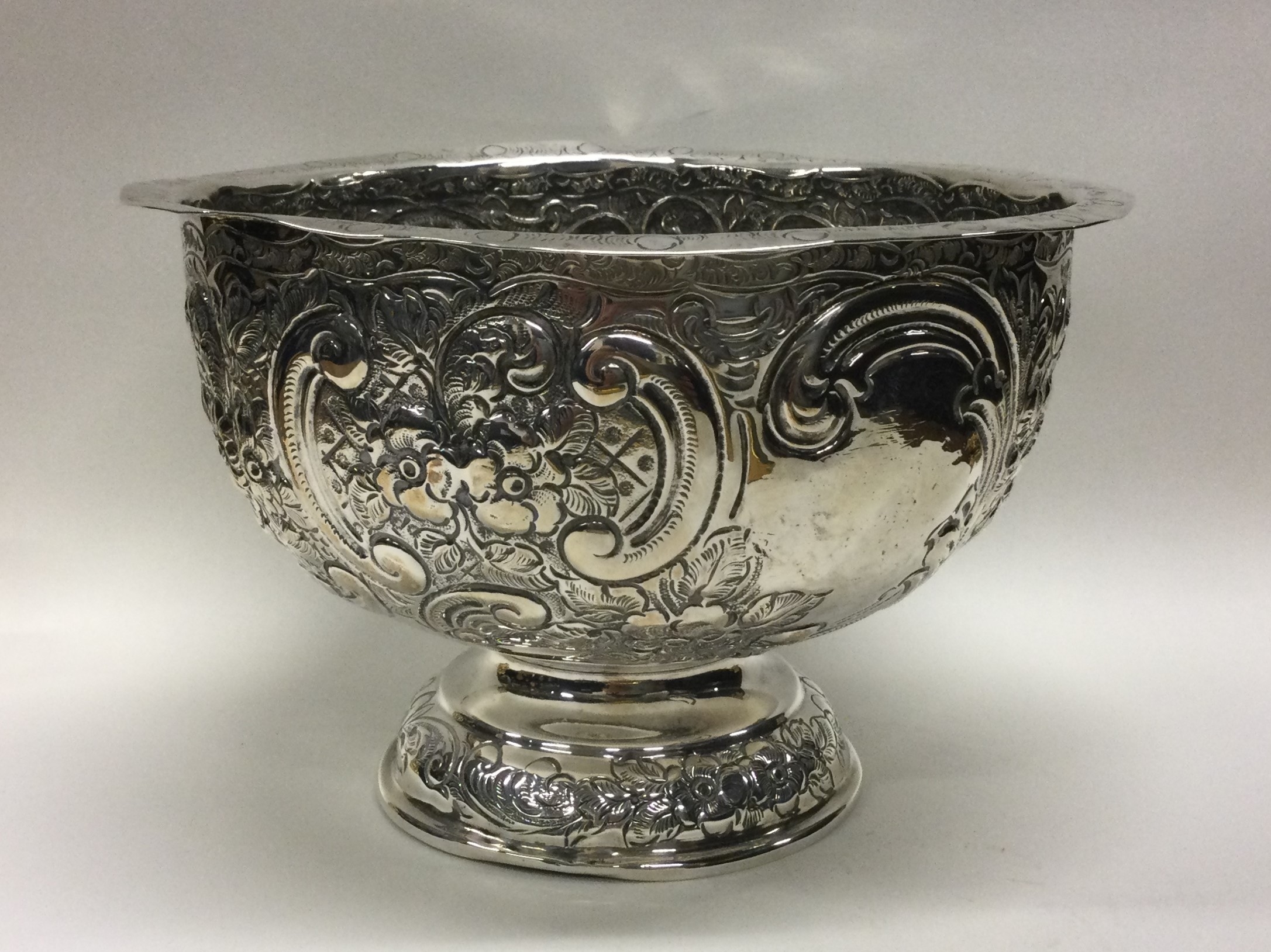 An embossed silver rose bowl decorated with figures and scrolls. London 1902. Approx. 325 grams. Est. £150 - £200.