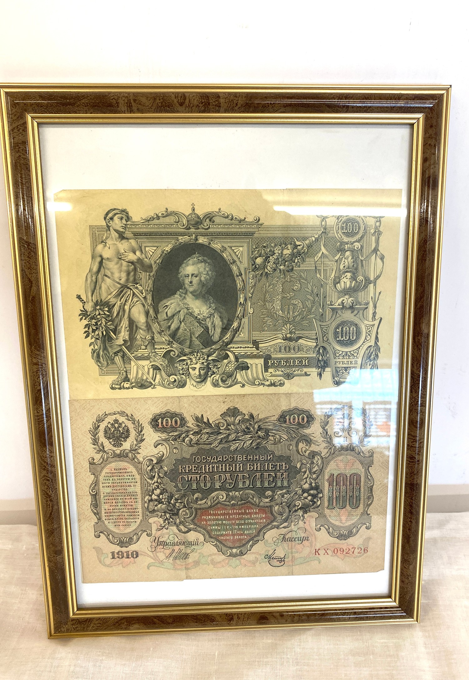 Framed Russian bank notes