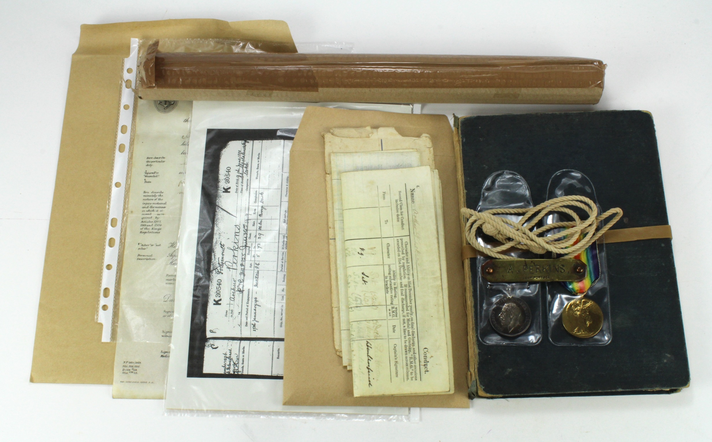 BWM & Victory Medal (K.30540 A Perkins STO.1.RN) with a qty of original photos, documents incl Certificate of Service. Born Churchfield, Oundle. (Qty)