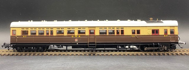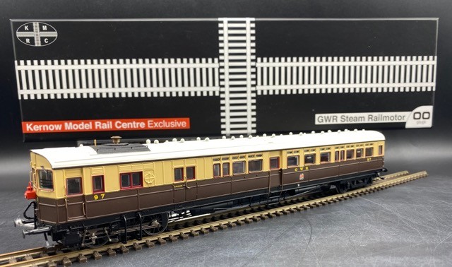 Kernow Models K2302 GWR Steam Railmotor number 97 in GWR Chocolate and Cream. (Kernow Exclusive) - Tested Runner w/Lights