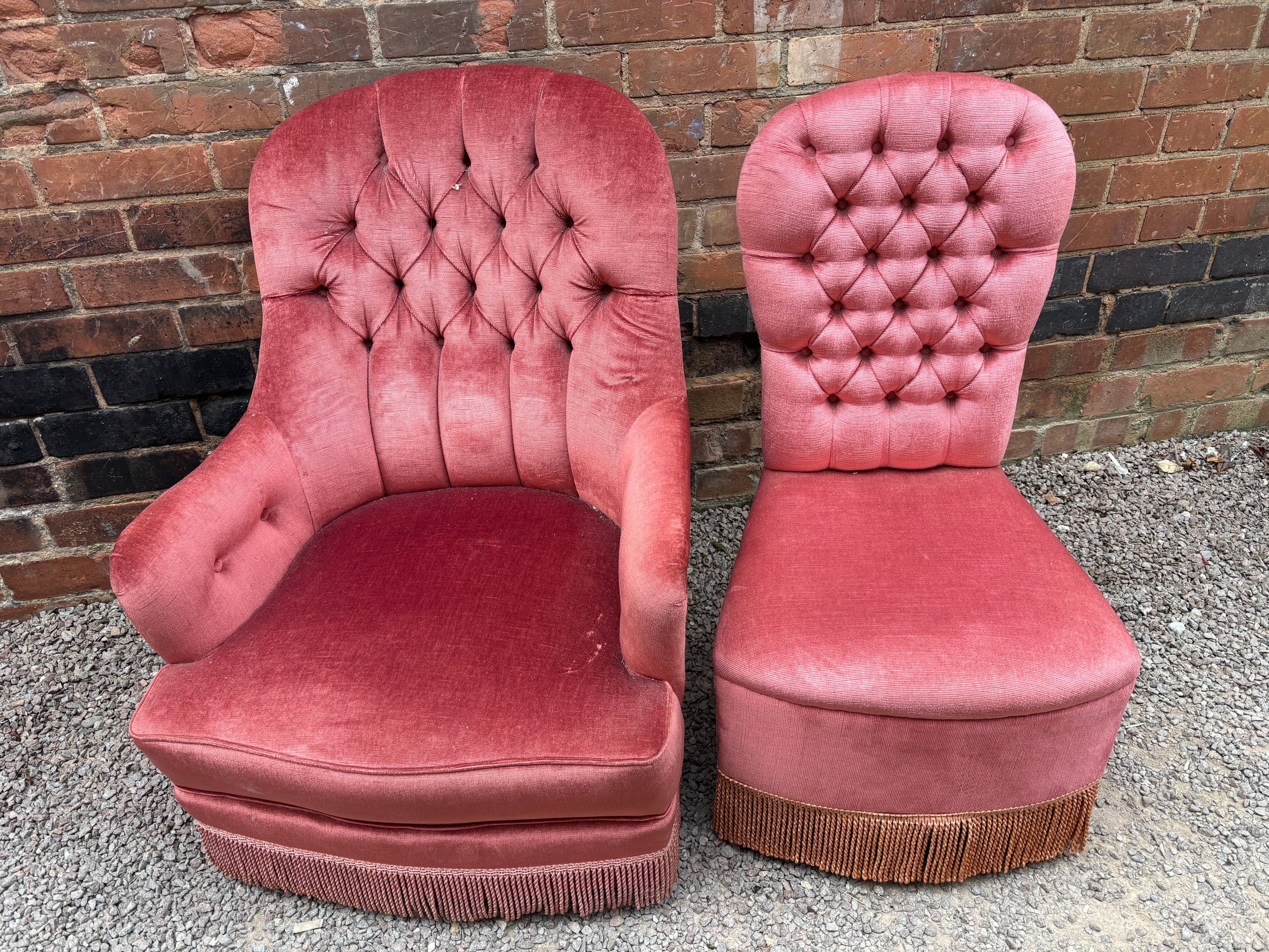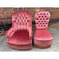 PINK BUTTON UPHOLSTERED FRINGED NURSING CHAIR AND SIMILAR BEDROOM CAHIR