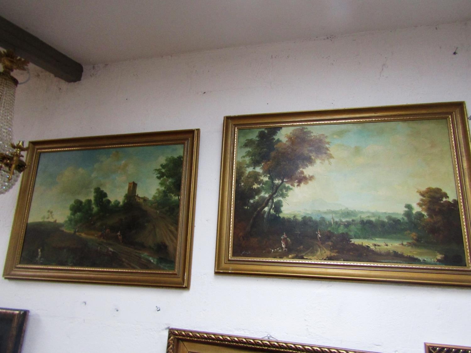 Pair of Victorian School Classical Landscapes with Figures Each Approximately 20 Inches High x 32 Inches Wide Contained within Gilded Frame