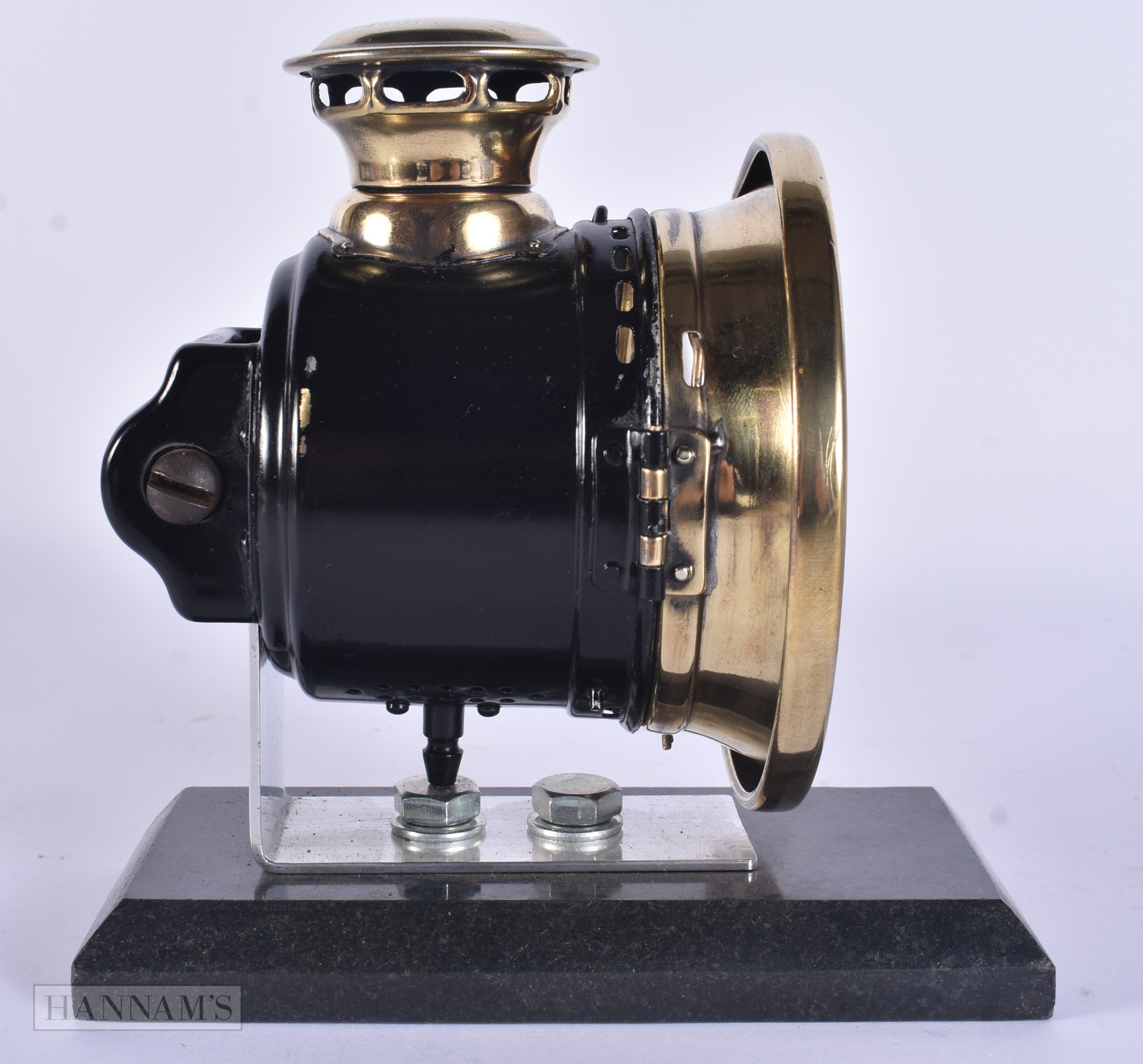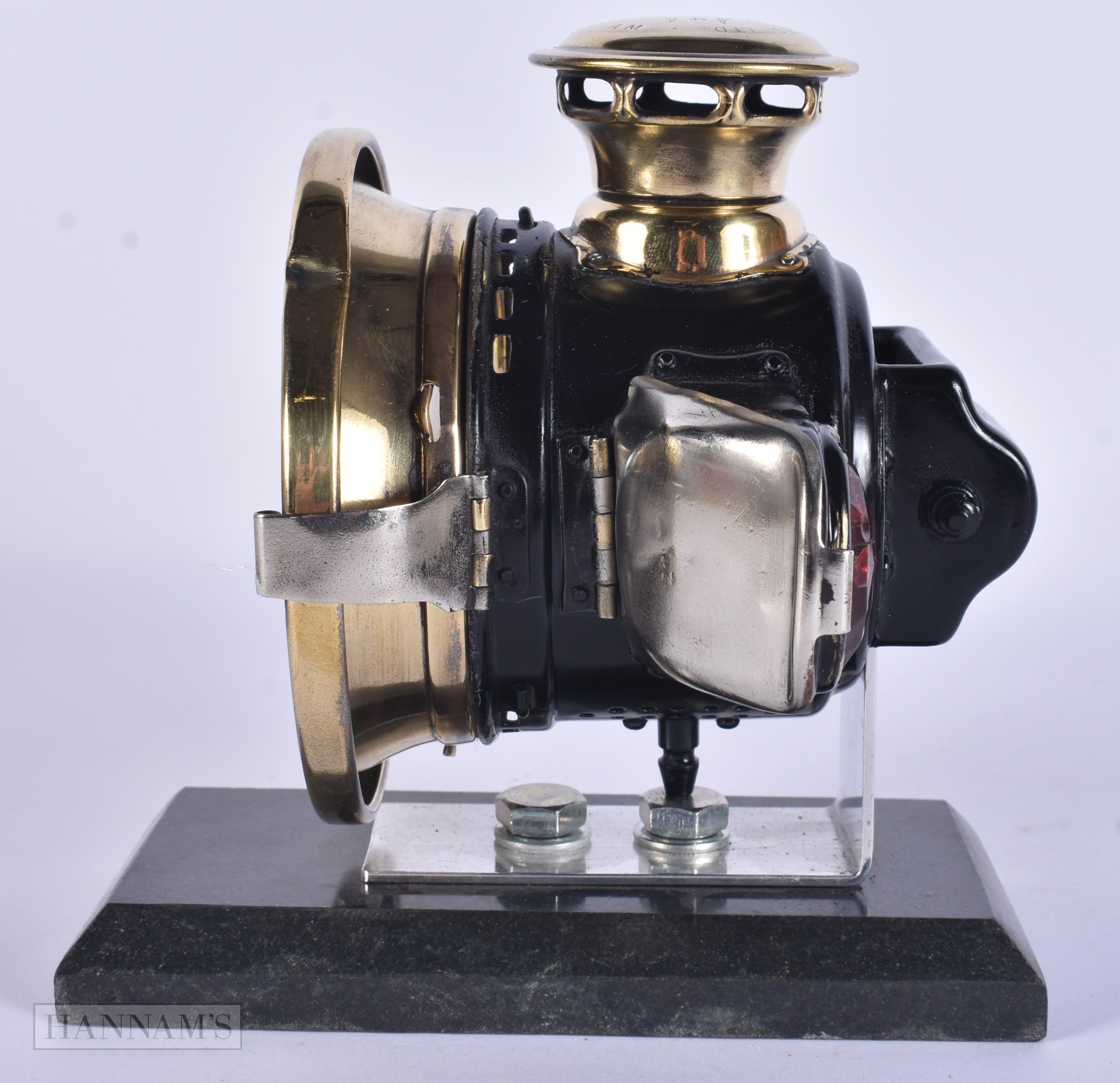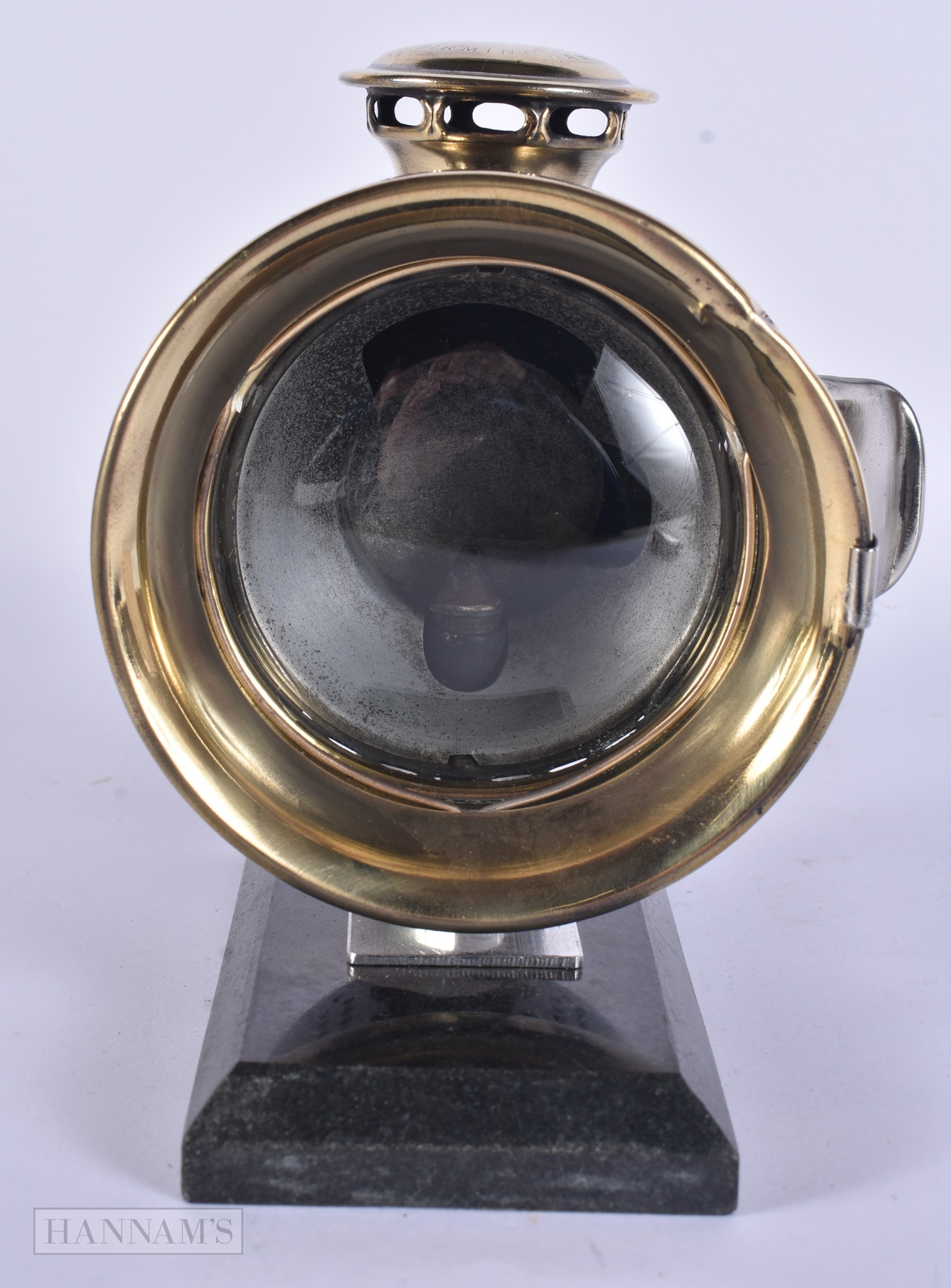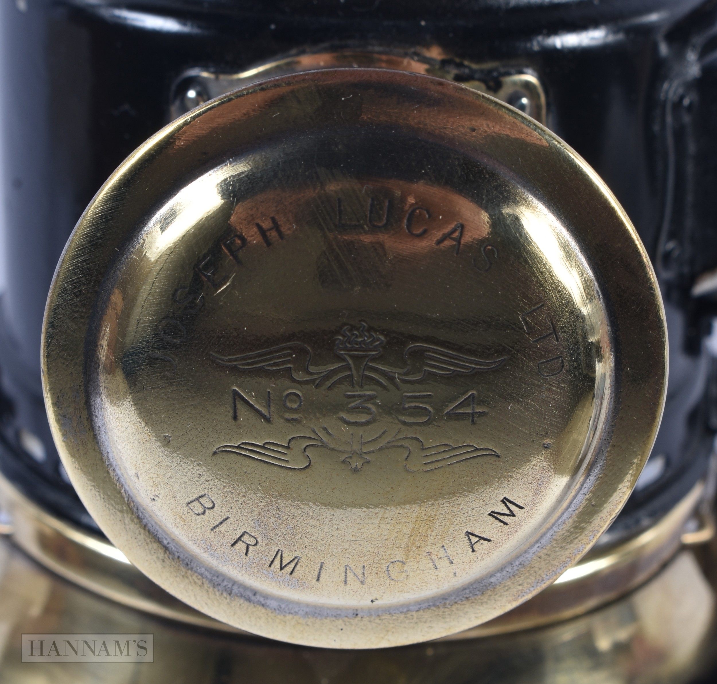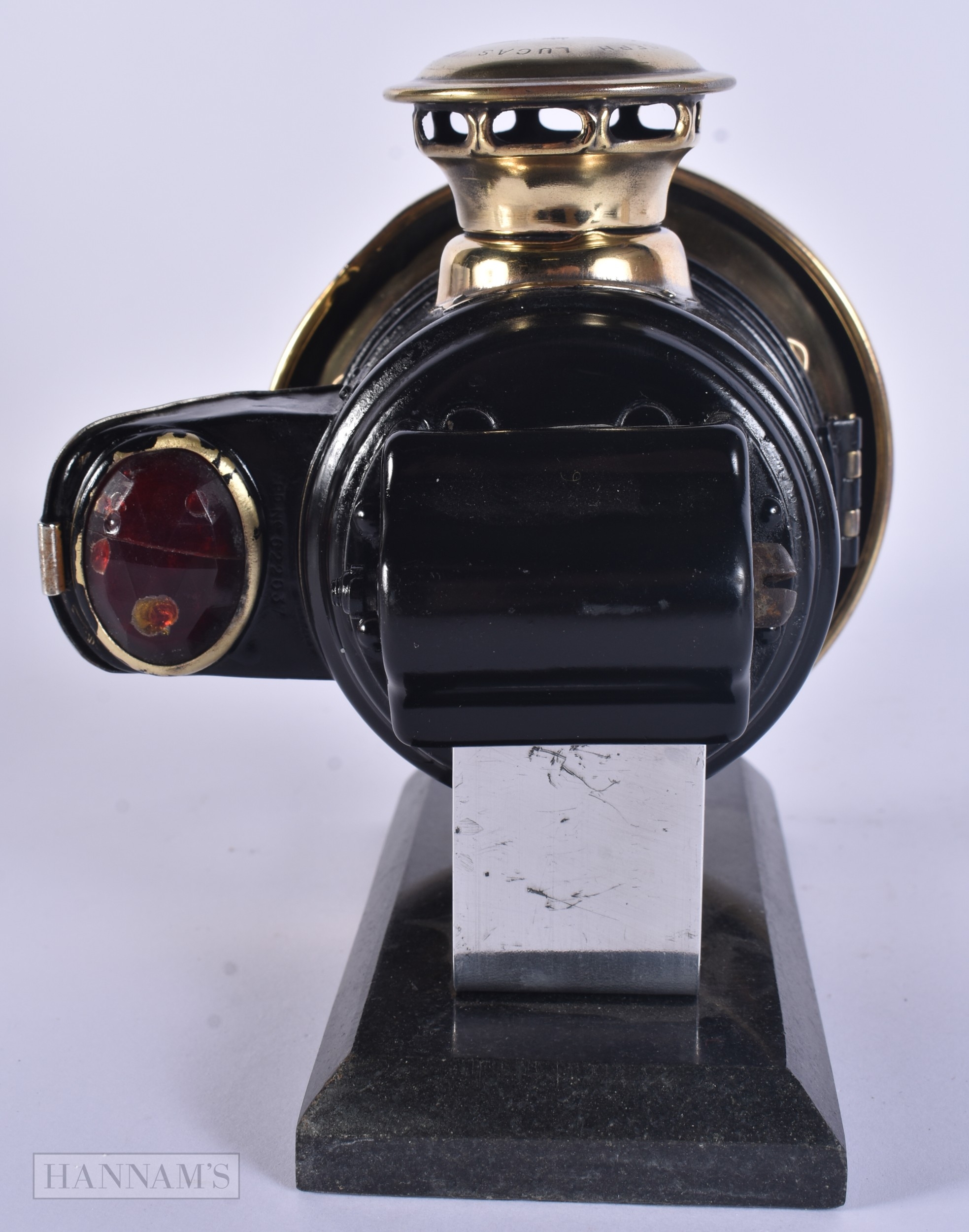A RARE ART DECO ACETYLENE MOTORISED BICYCLE SIDECAR LAMP NO 354 by Joseph Lucas. 16 cm x 14 cm.