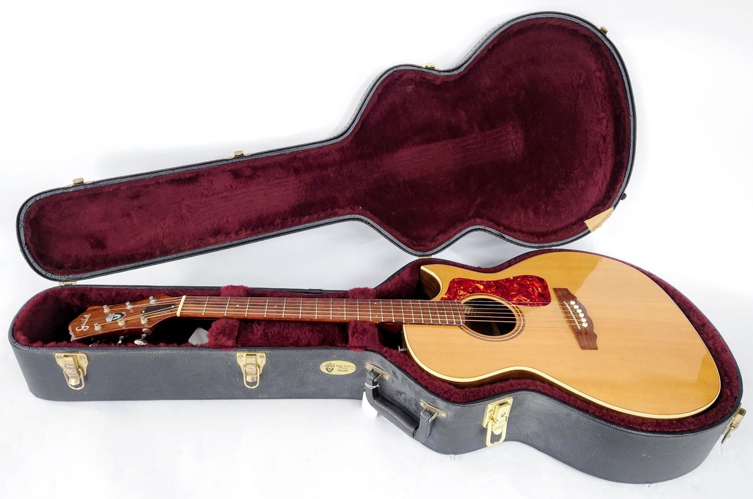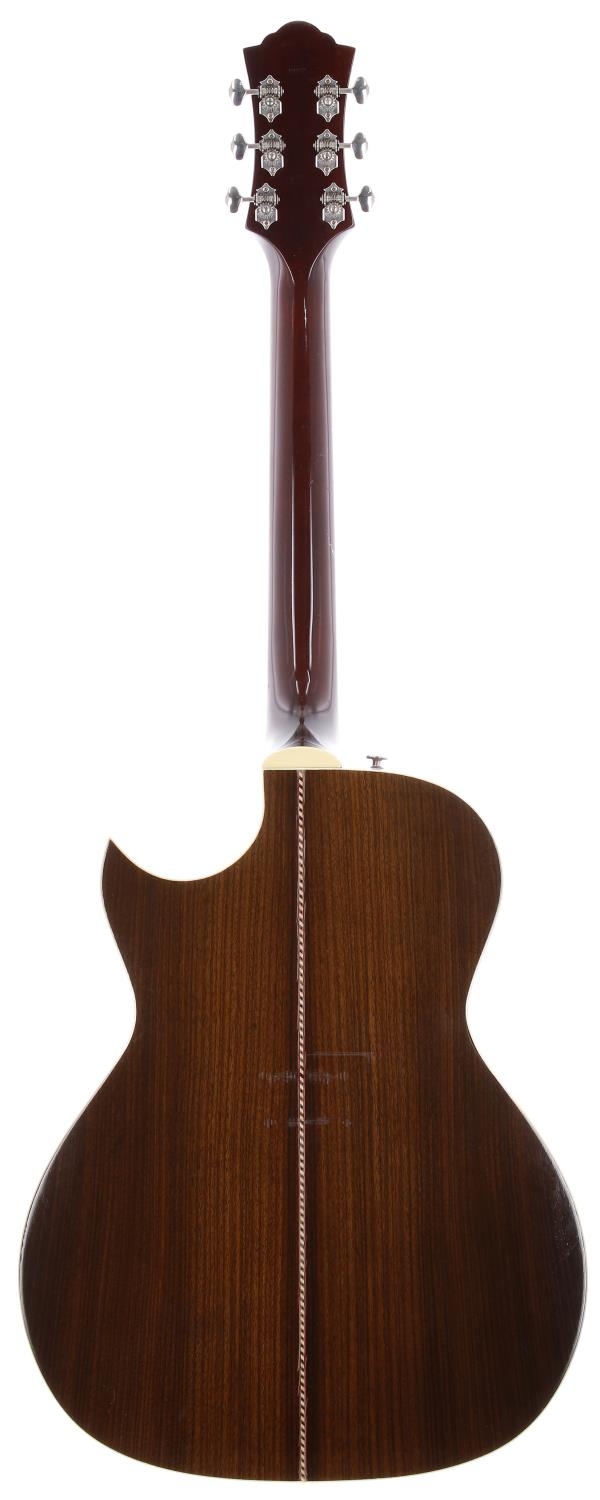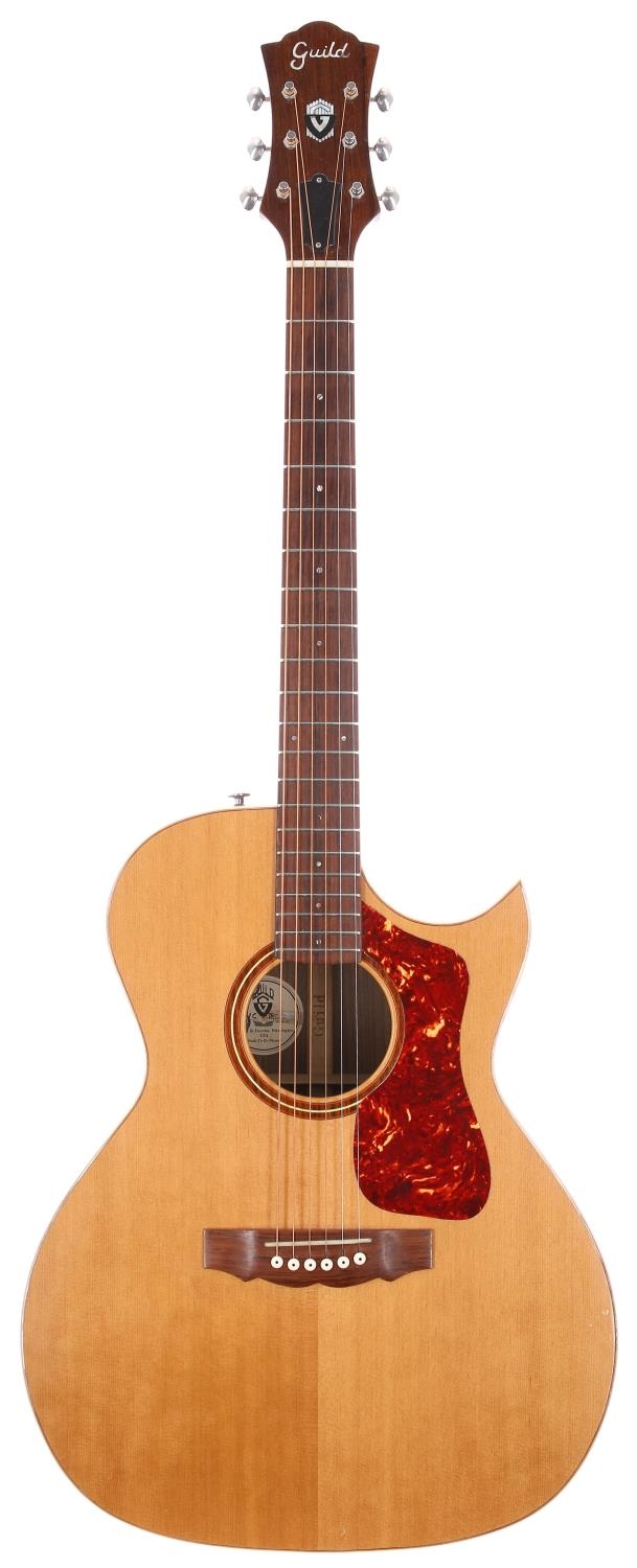 2007 Guild CV-1C acoustic guitar, made in USA; Back and sides: Indian rosewood, nitro stand burn to centre back, further light scratches; Top: natural spruce, minor dings; Neck: mahogany, minor surface marks, stamped 'Used' to back of head; Fretboard: rosewood; Frets: light wear to first position; Electrics: working, D-Tar system; Hardware: good; Case: original hard case; Overall condition: good
