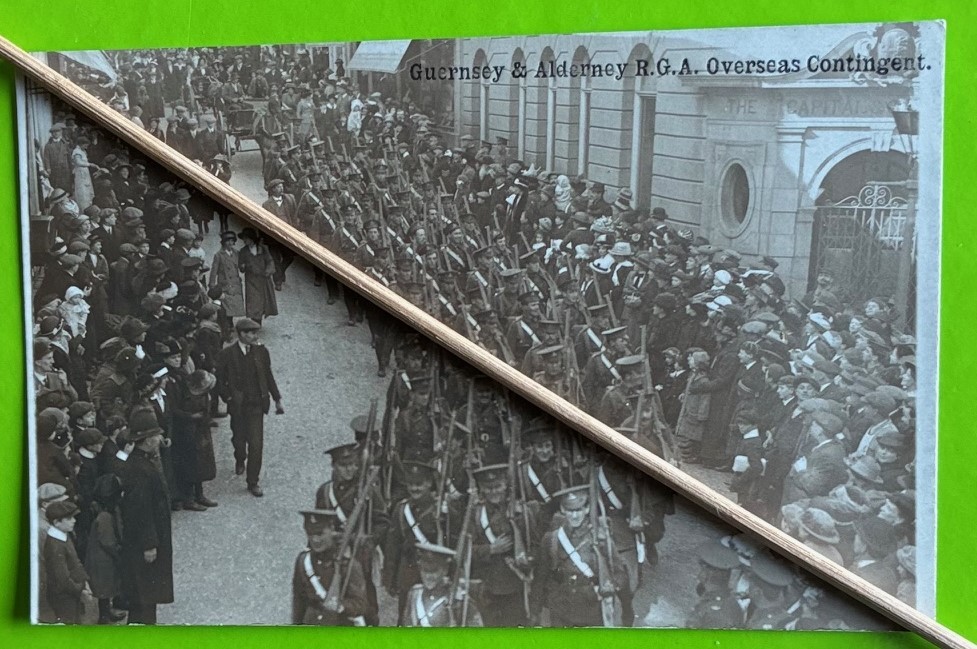 Real photographic postcard by Thomas Bramley Guernsey, Guernsey & Alderney Royal Guernsey Artillery Overseas Regiment.