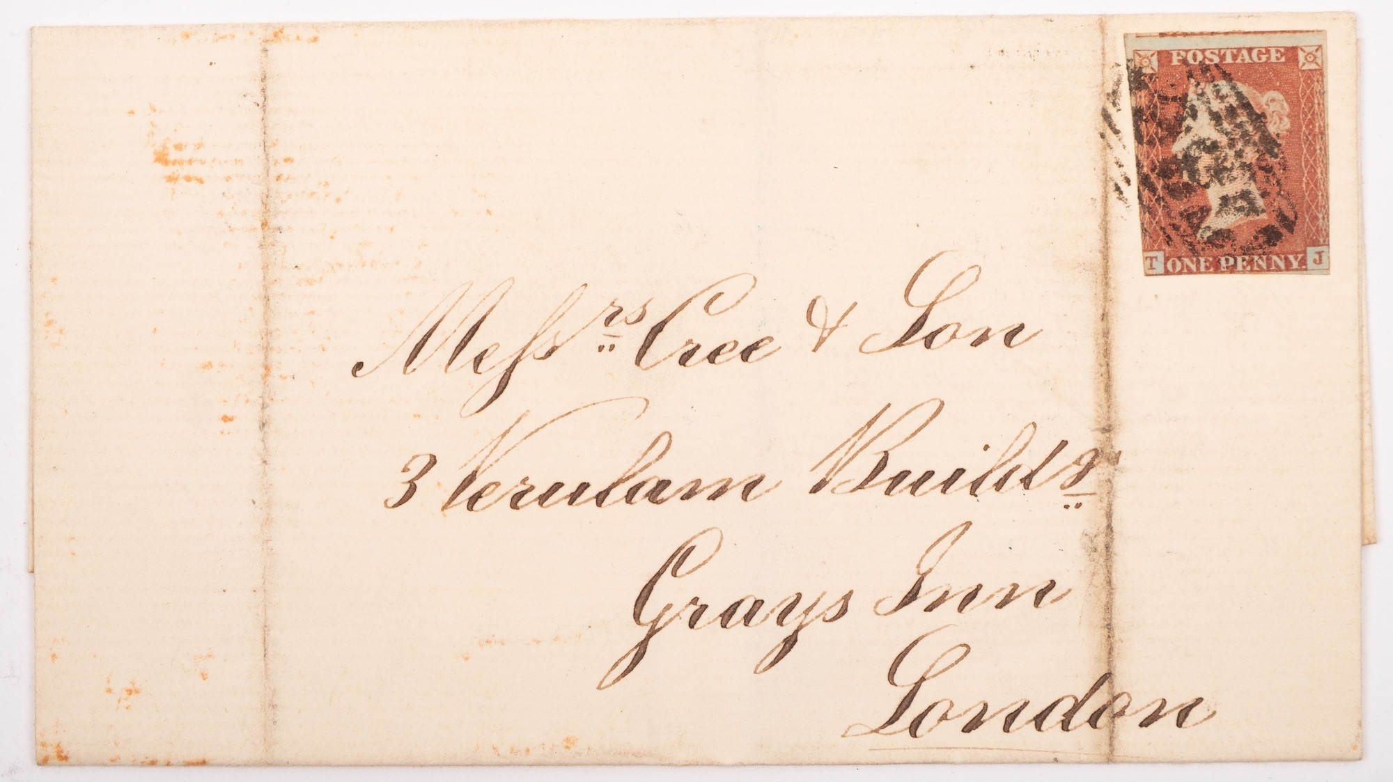 Great Britain. An interesting collection of pre-stamp correspondence and later Line Engraved covers, in six volumes. Offered intact and viewing is highly recommended.