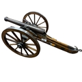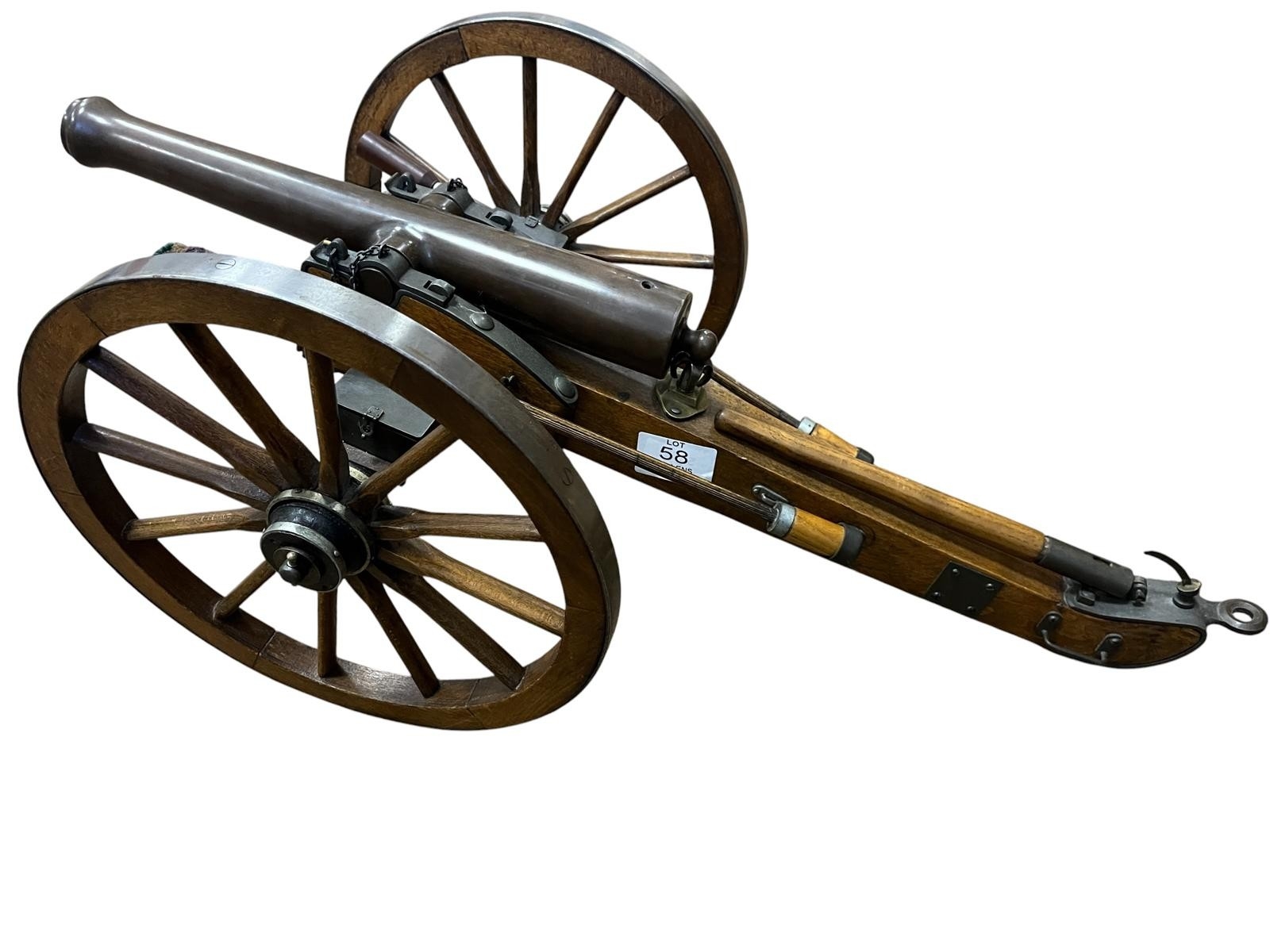 A VERY GOOD SCALE MODEL OF A 19TH CENTURY FIELD ARTILLAERY CANNON with steel banded wheels and bronze fitments. Overall length approx. 71cm.
