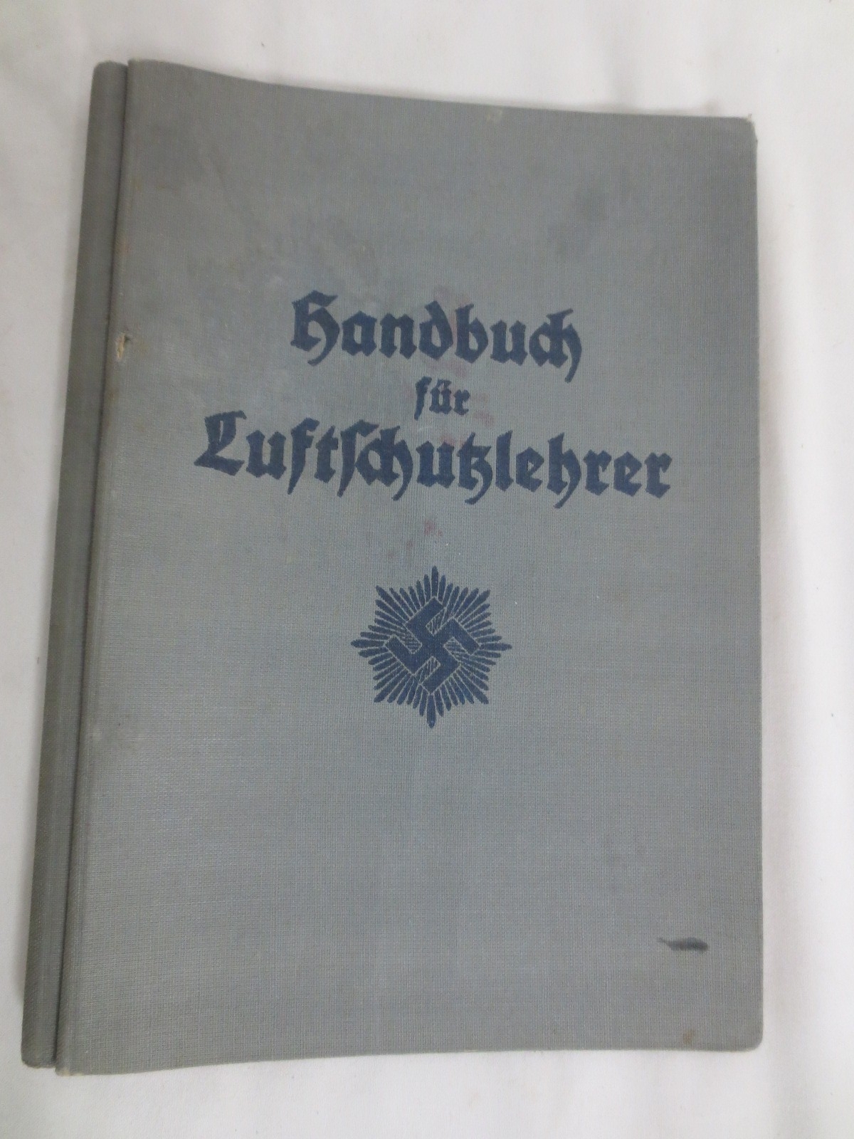 A WW2 German air raid precautions handbook, covers only, 'Hundbuch fur Luftschutzlehrer', in good condition