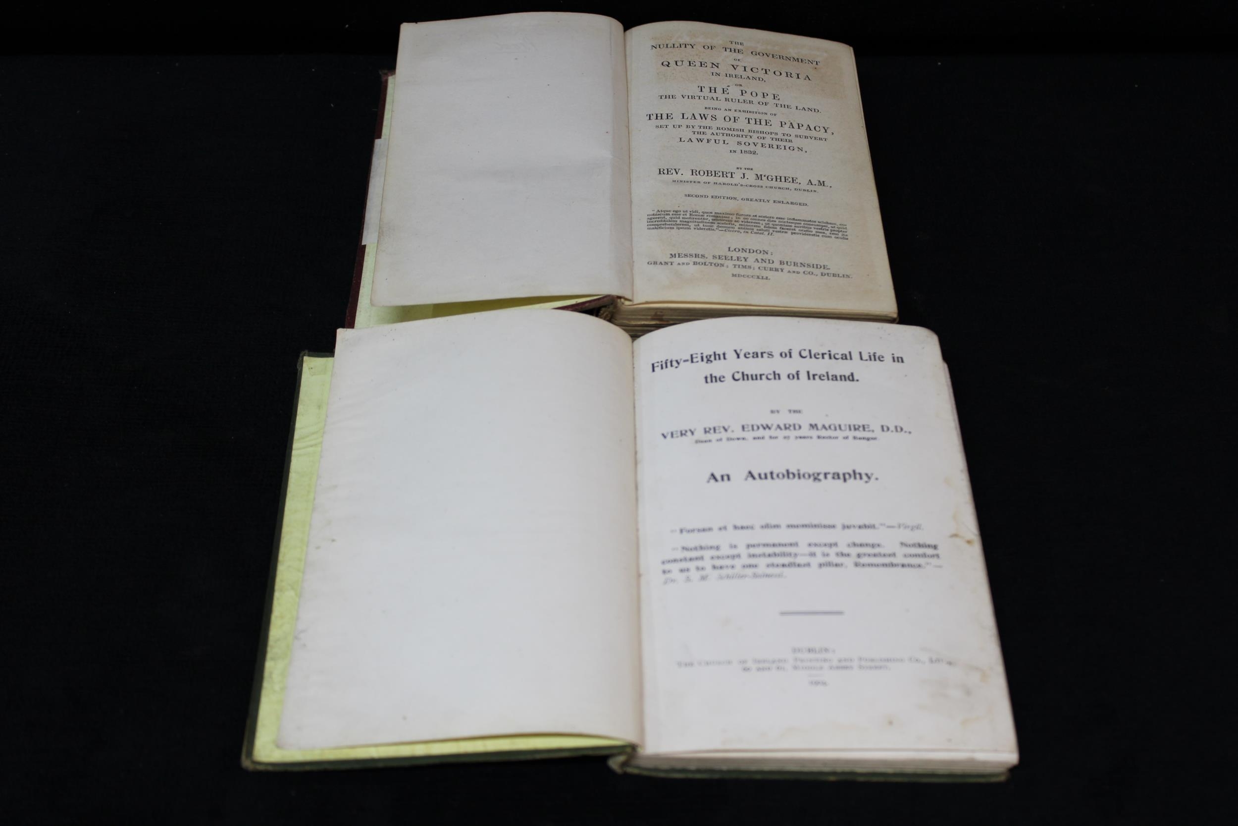 The Nullity of The Government of Queen Victoria in Ireland by Rev Robert McGhee 1st Edition 1841 "scarce" together with Fifty Eight Years of Clerical Life in Ireland by Rev Edward Maguire 1904 both good (2)