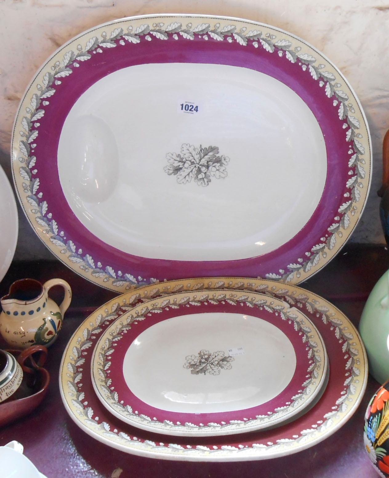 Three 19th Century Wedgwood pottery meat platters with transfer printed 'acorn' decoration - various condition