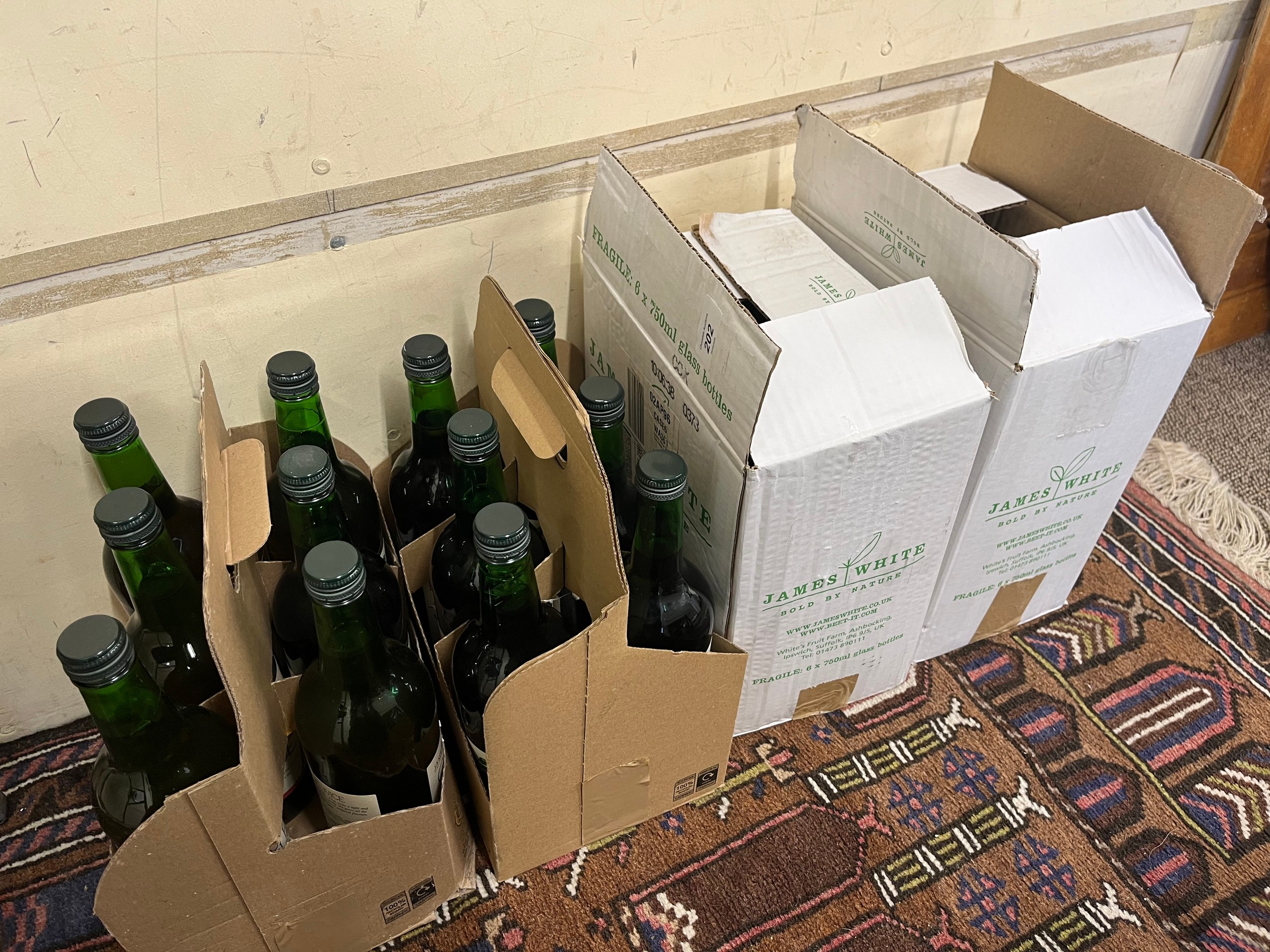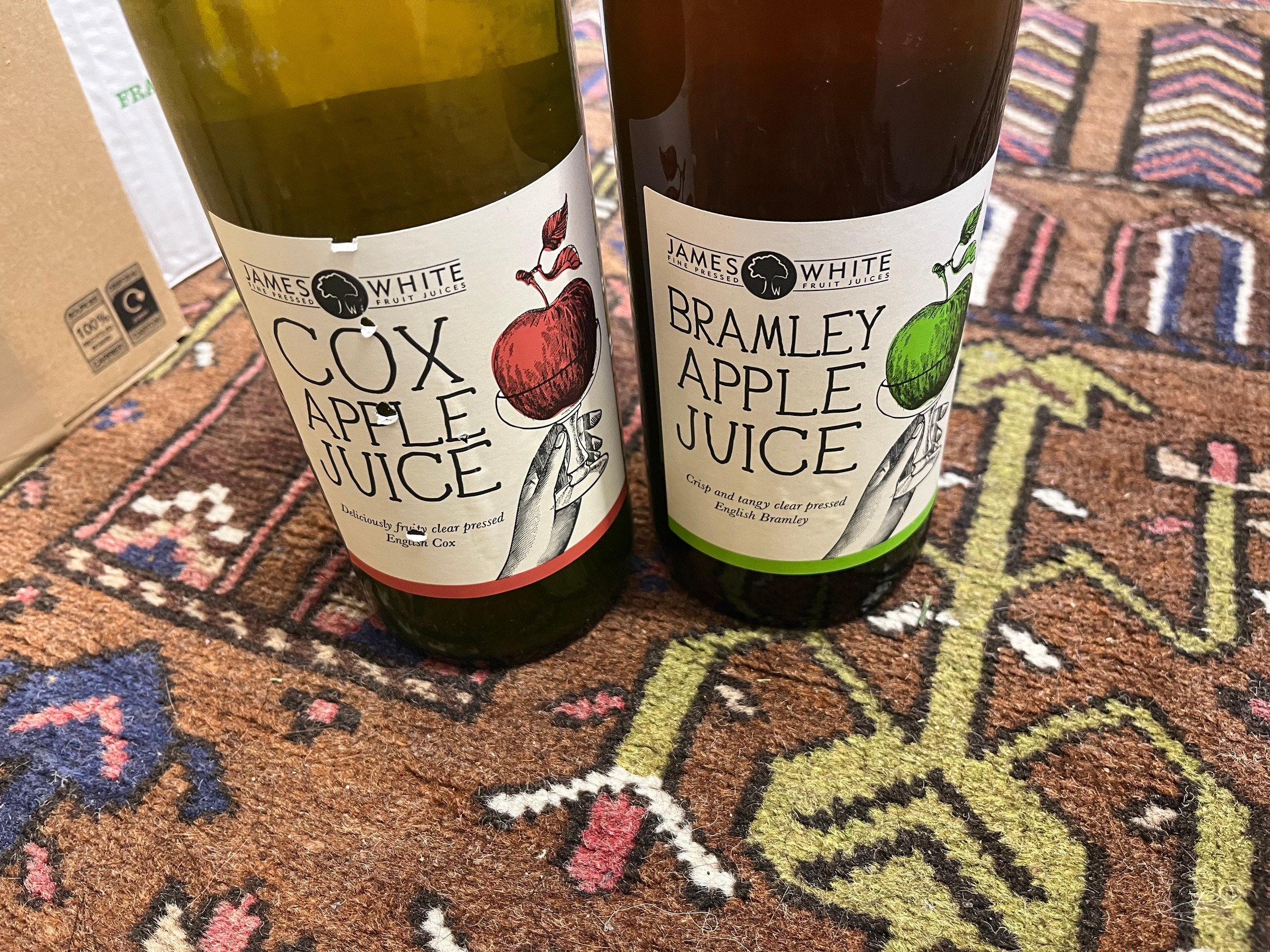 Twenty Four bottles of James White classic apple juice - Bramley and Cox