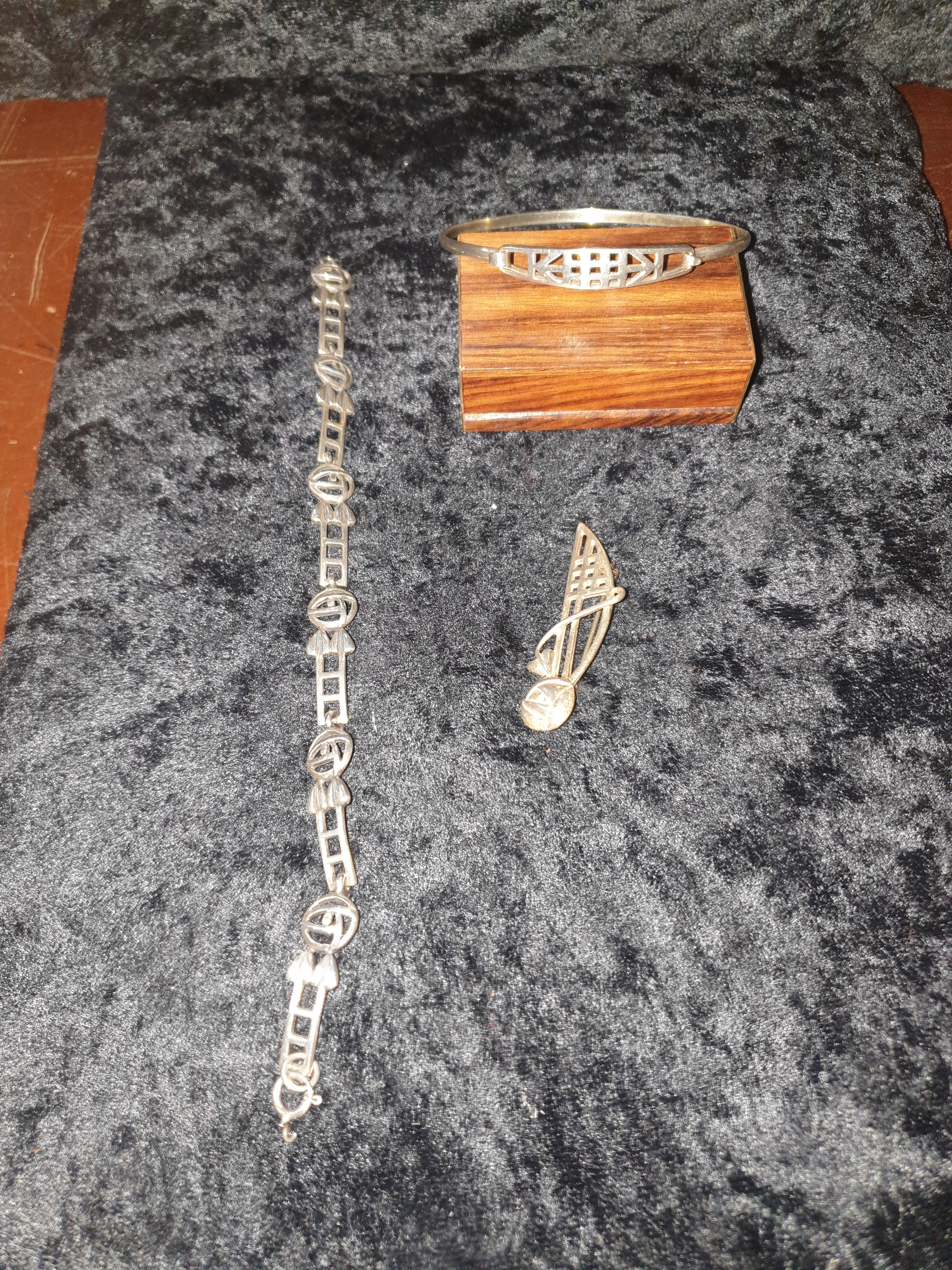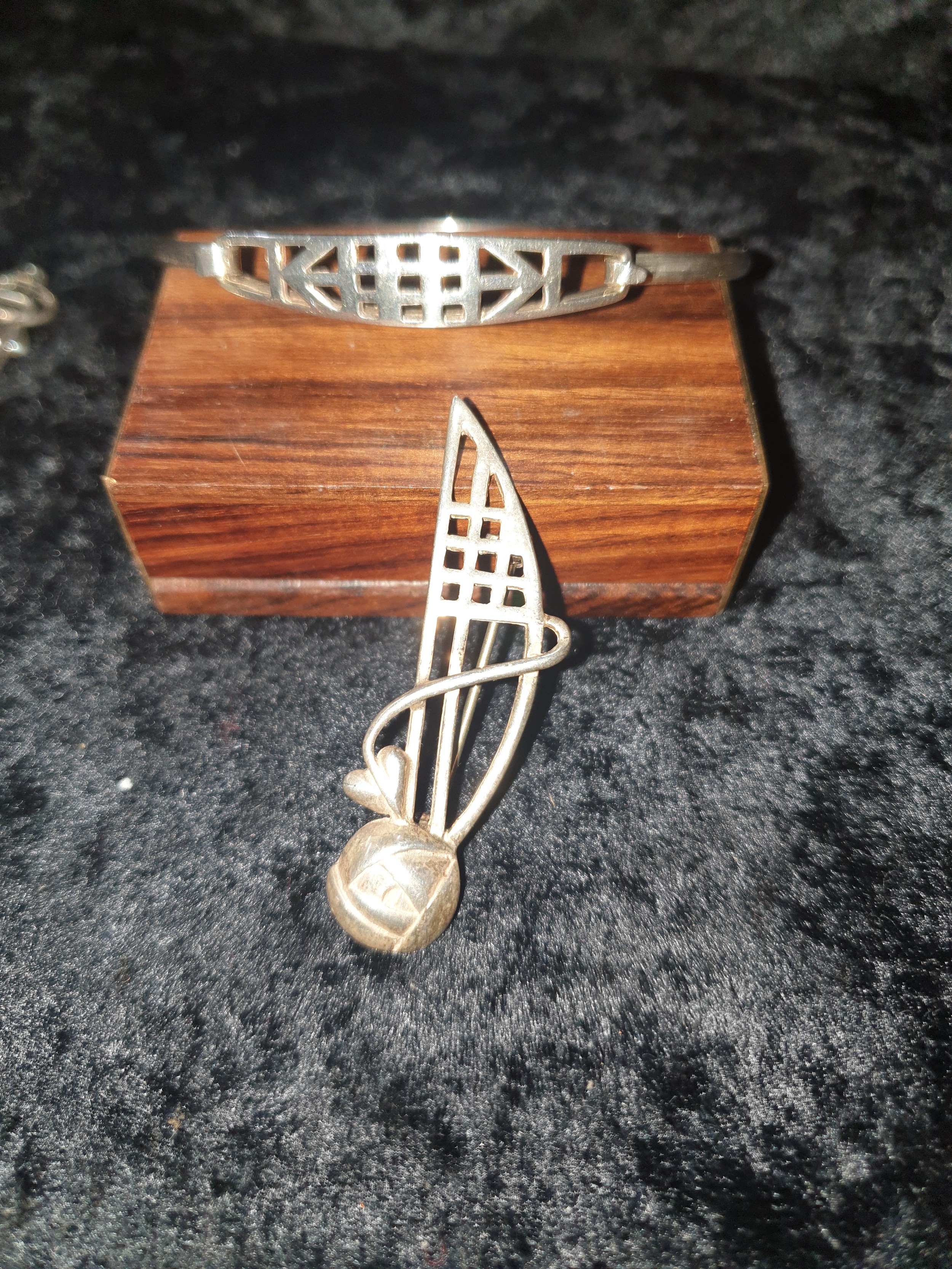 Collection of Silver Rennie McIntosh Items Bangle, Bracelet And Brooch.