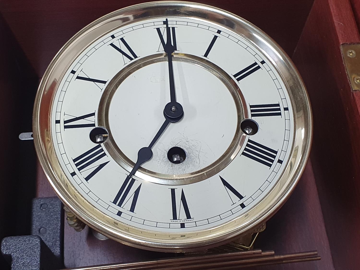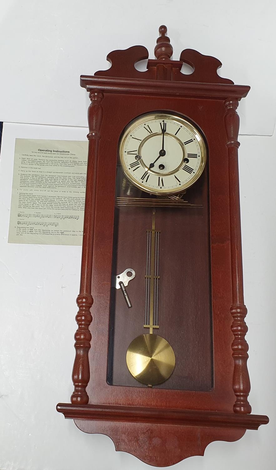 German 20thC wall hanging clock with pendulum and key