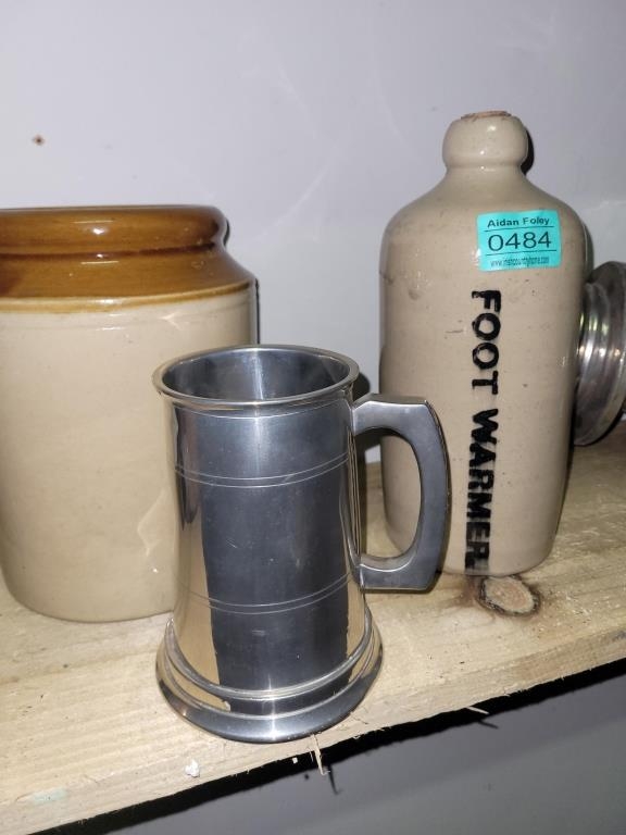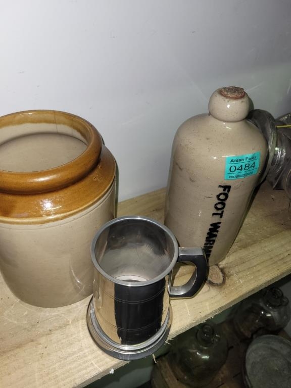 Ironstone Marmalade Jar, Ironstone Foot Warmer and a Tankard