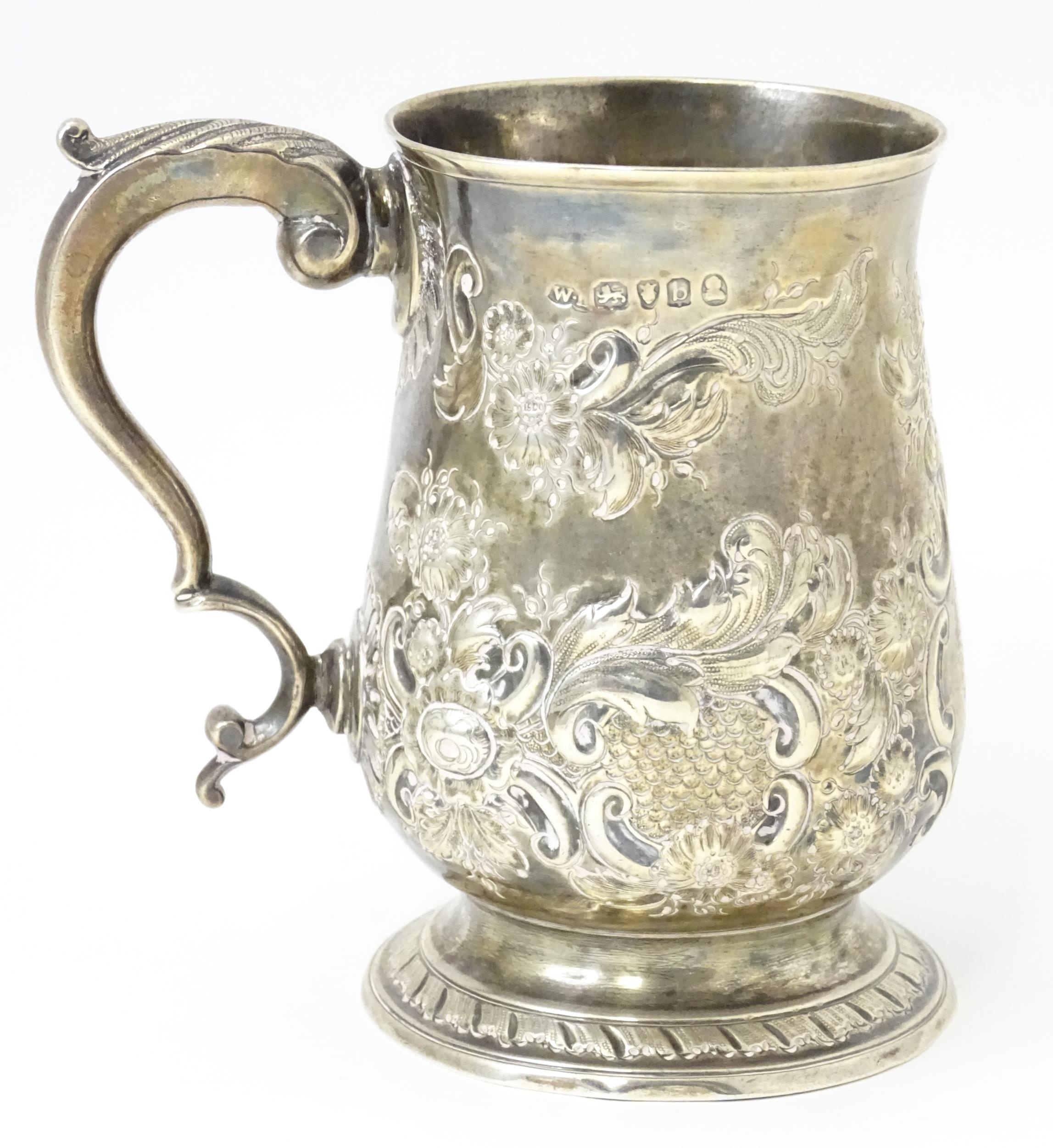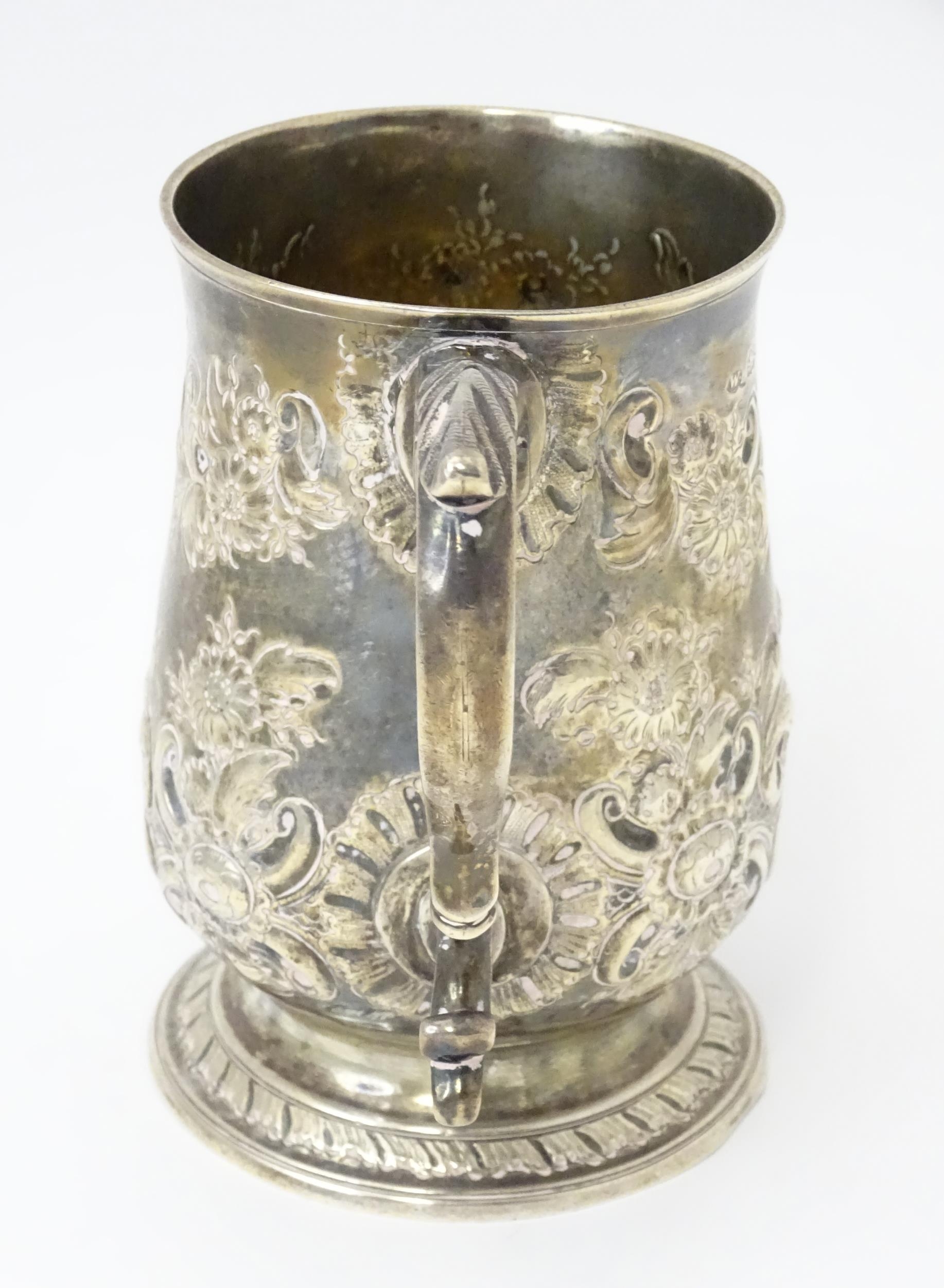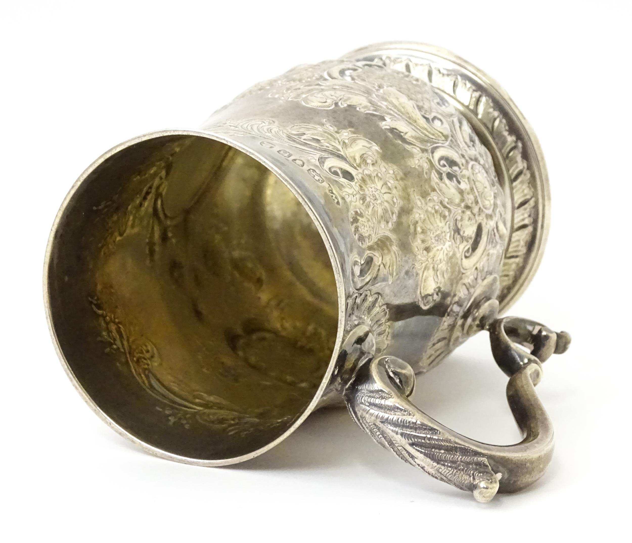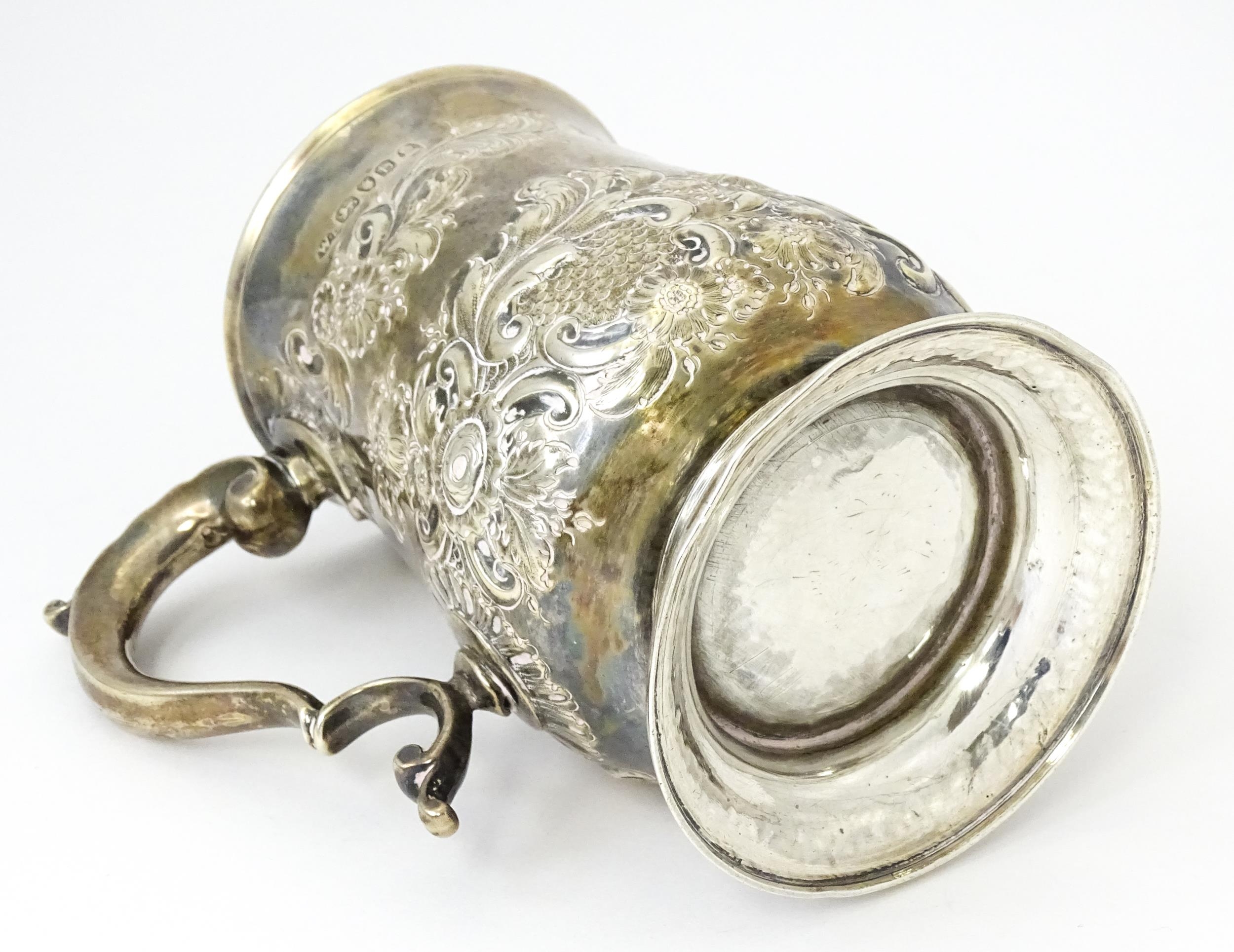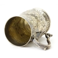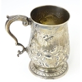 A George III silver mug / tankard with repousse decoration, hallmarked London 1817. Approx. 5" high (TW approx. 301g)