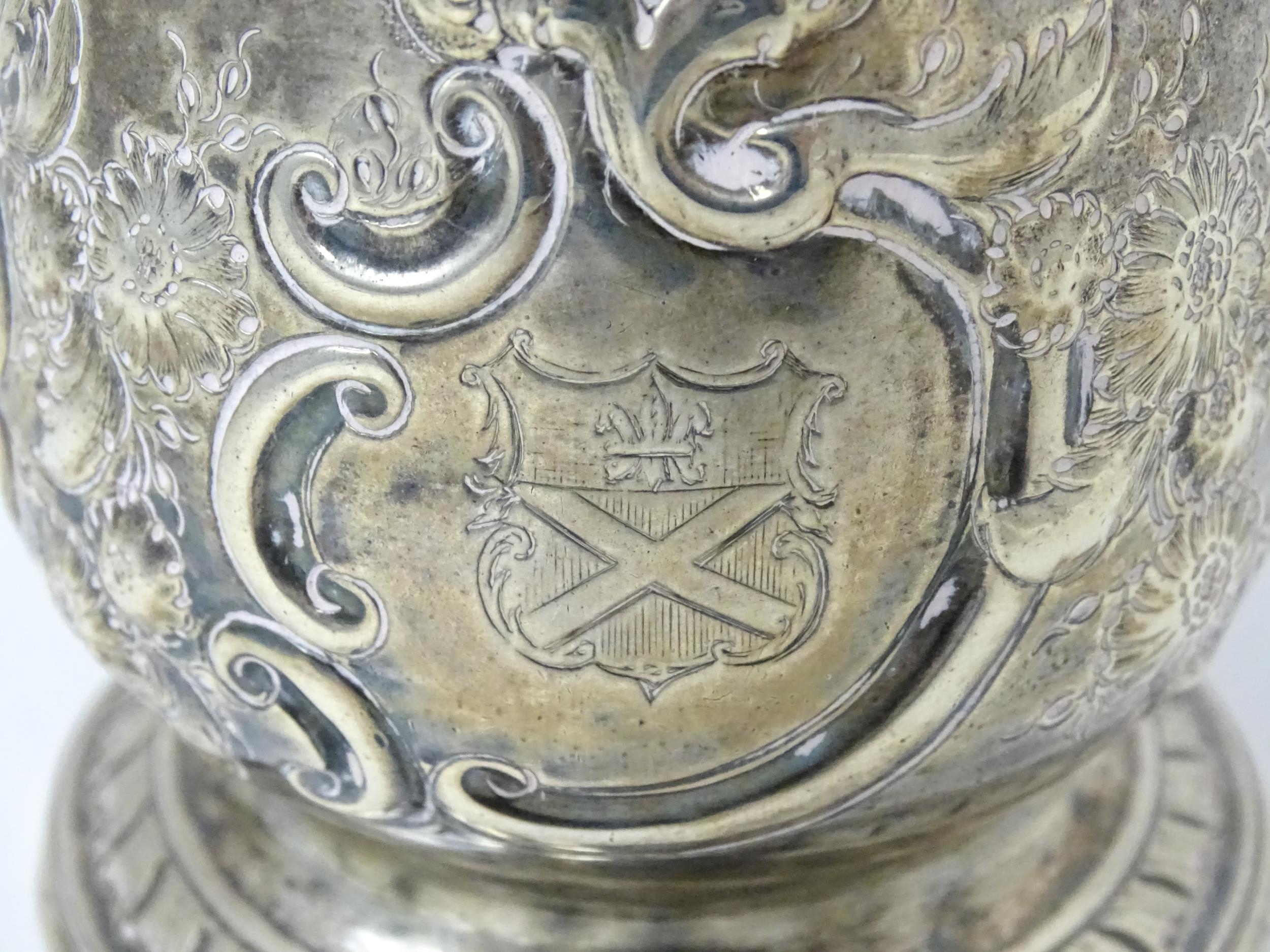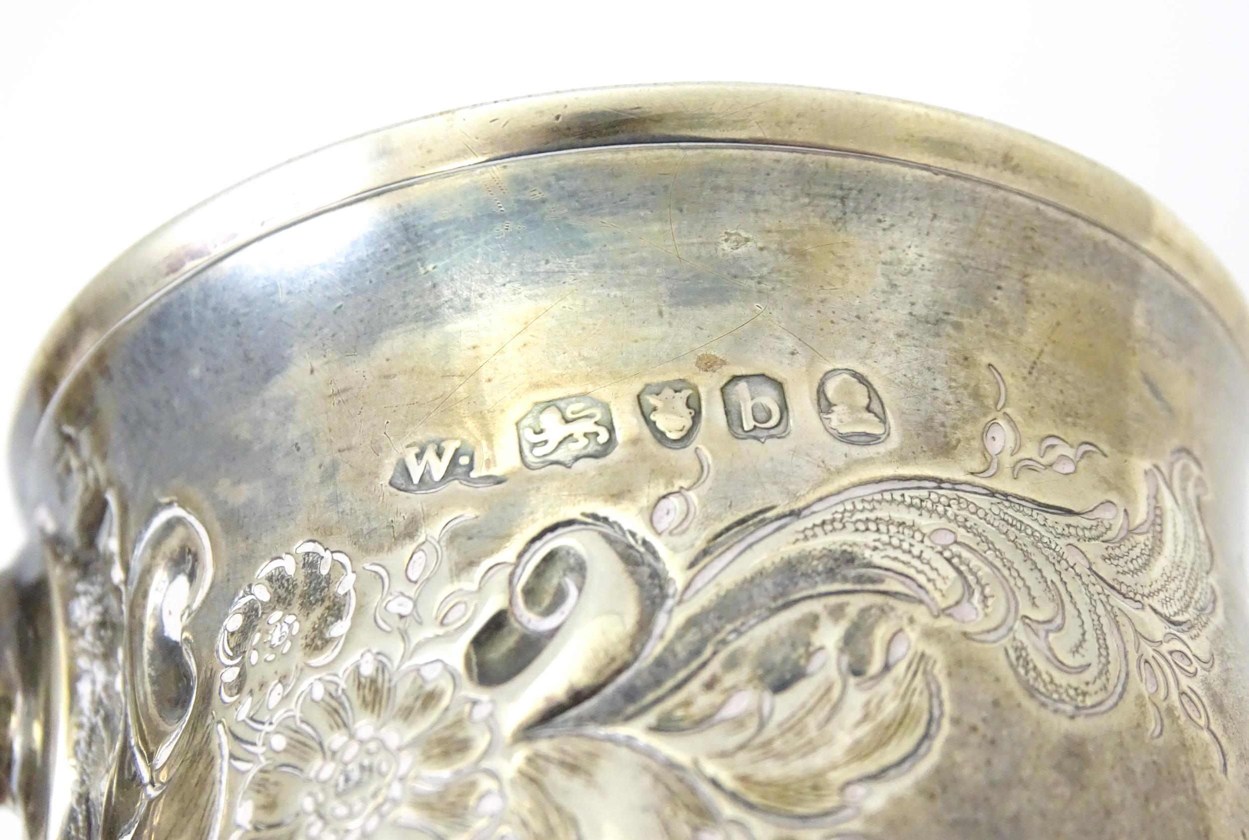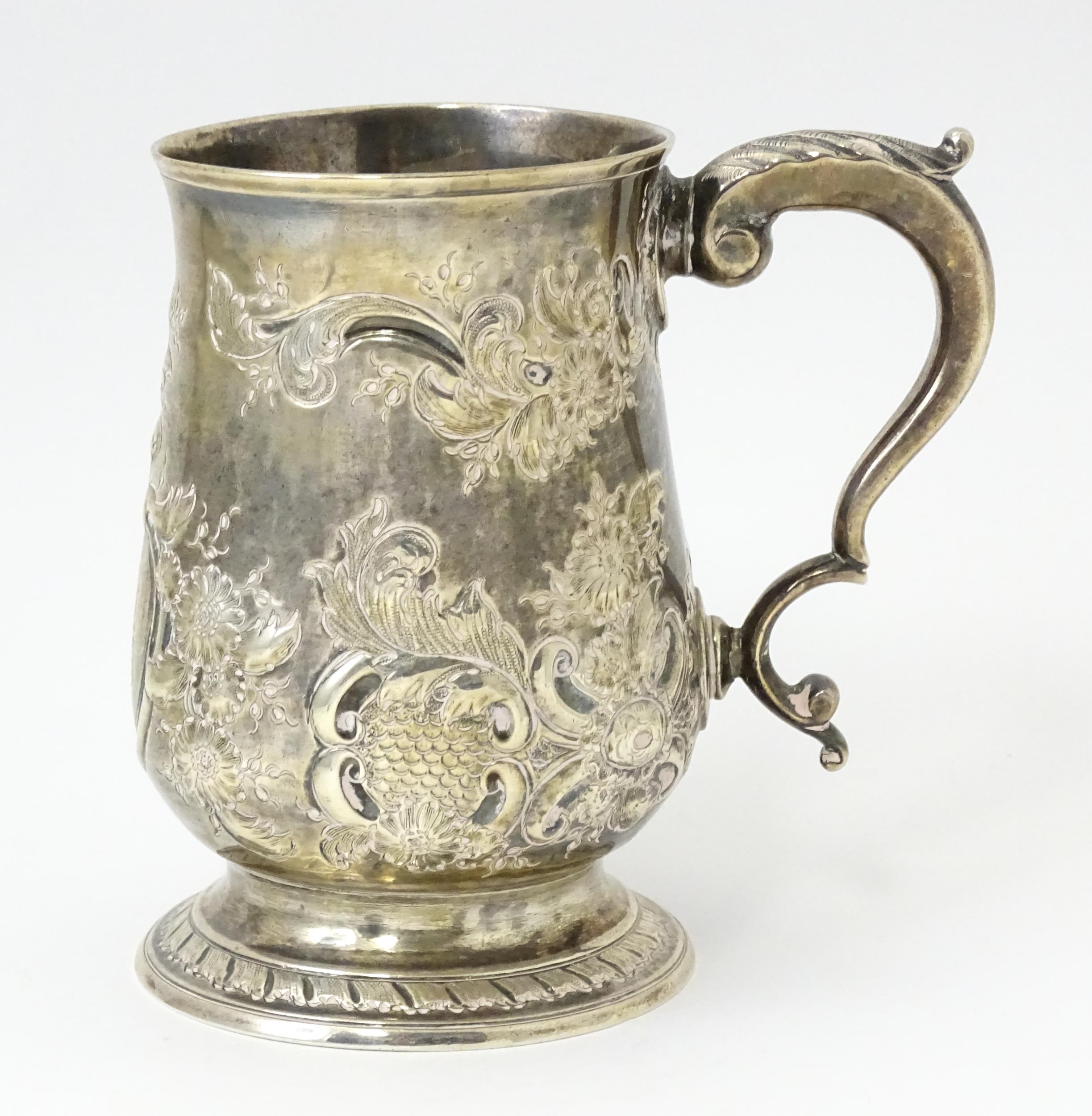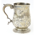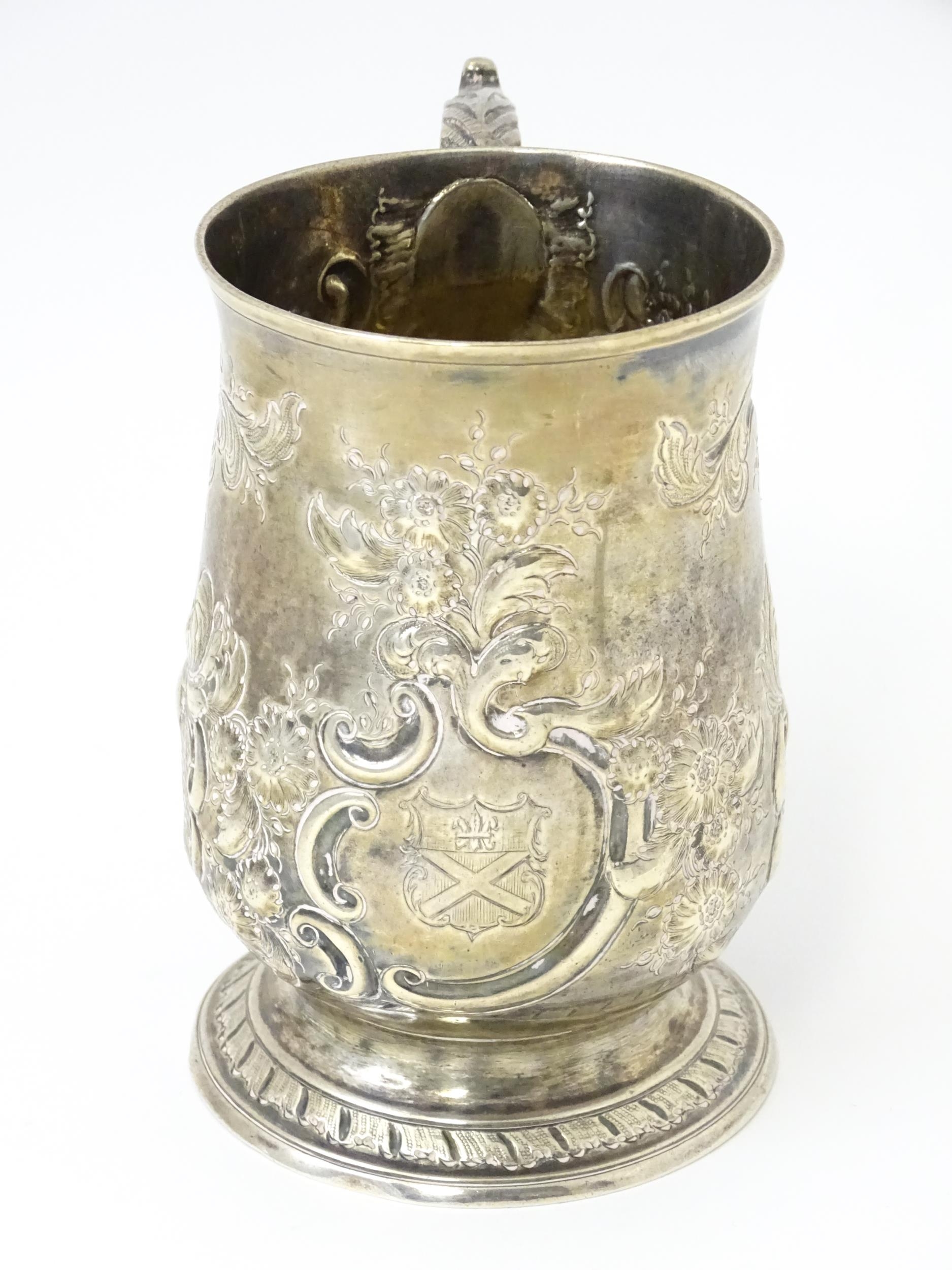 A George III silver mug / tankard with repousse decoration, hallmarked London 1817. Approx. 5" high (TW approx. 301g)