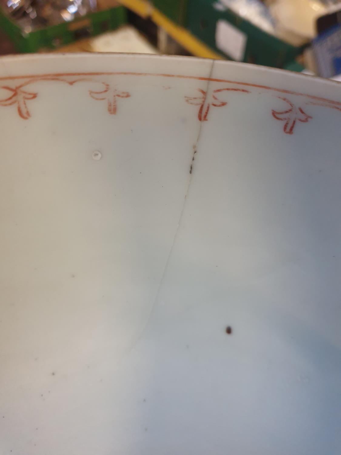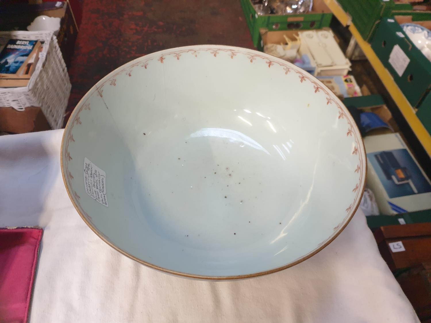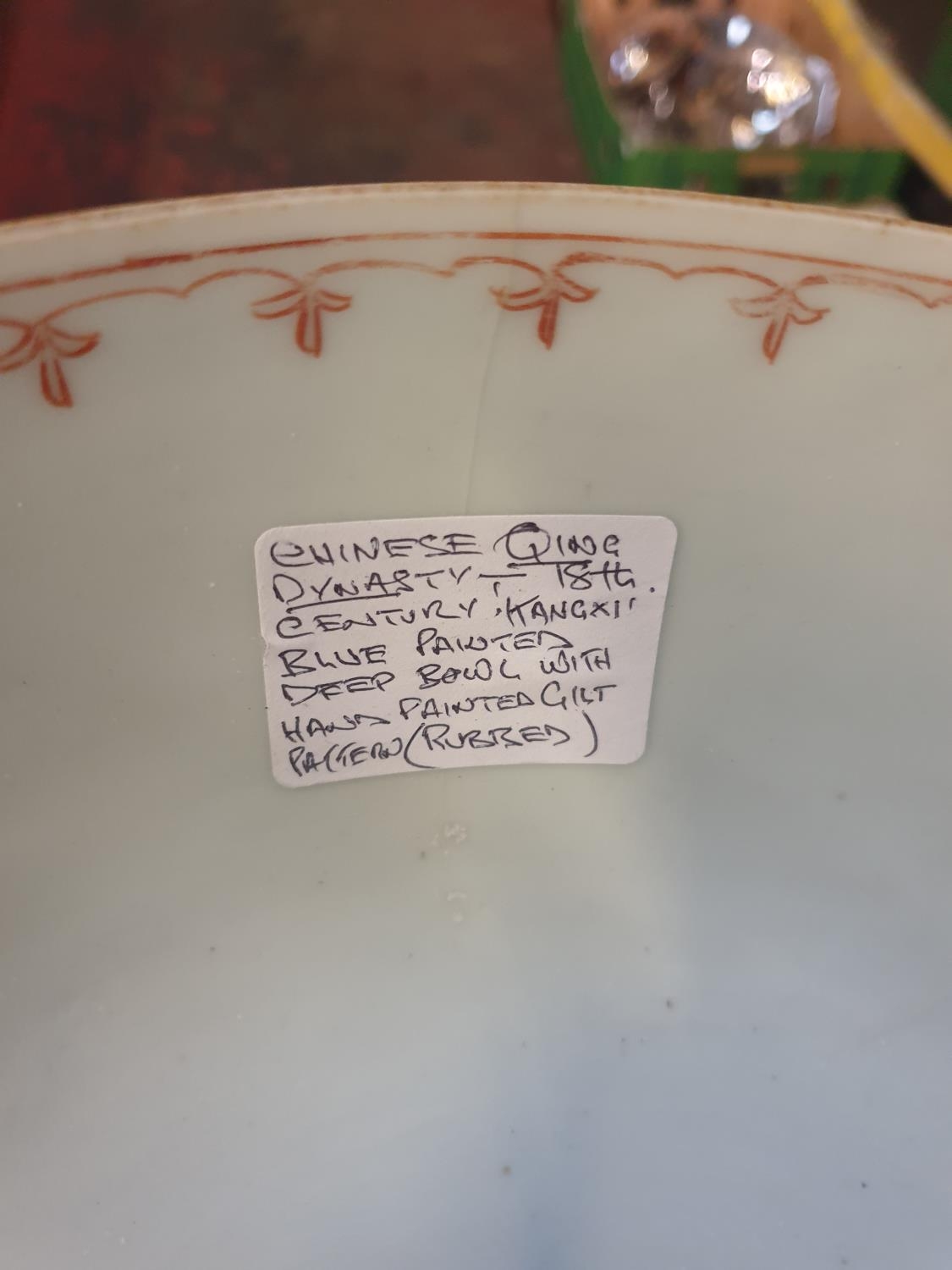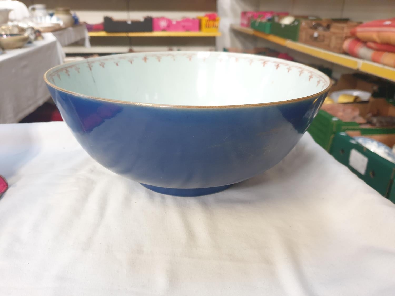 18th Century Qing Dynasty Chinese Large Bowl Decorated in Blue with Faded Gilt Landscape - approx 27cm.