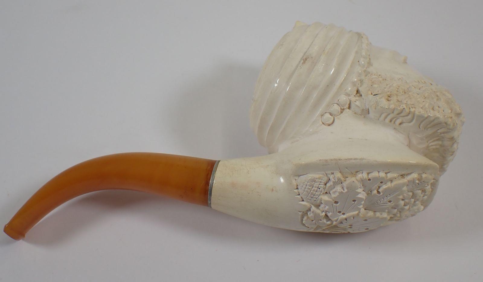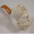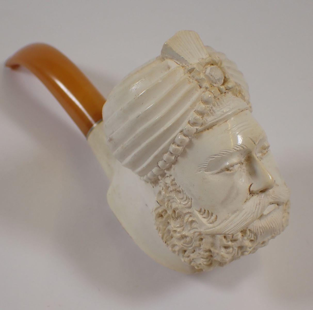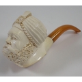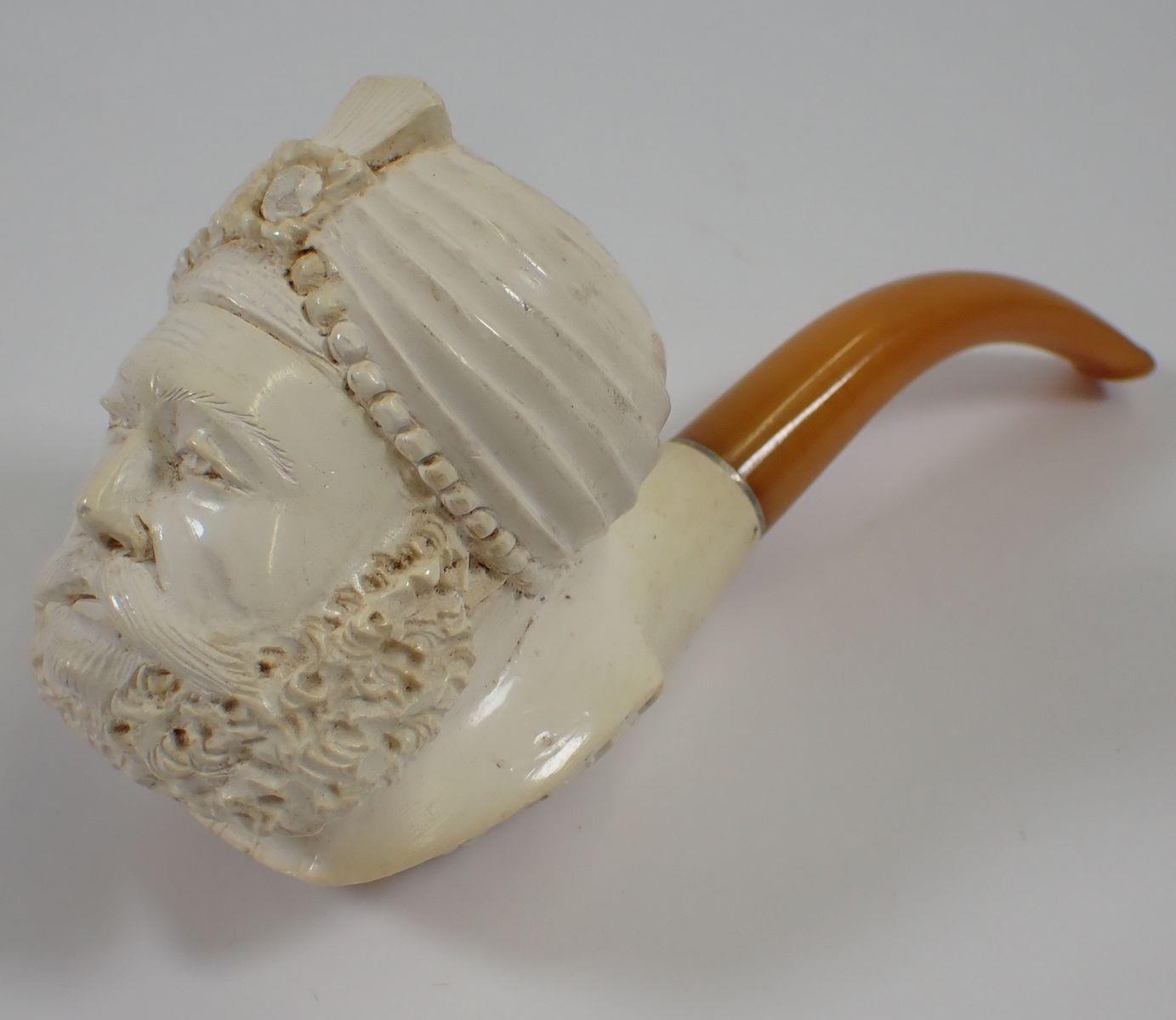 A Meerchaum pipe in the form of an Eastern man with turban, with amber mouthpiece