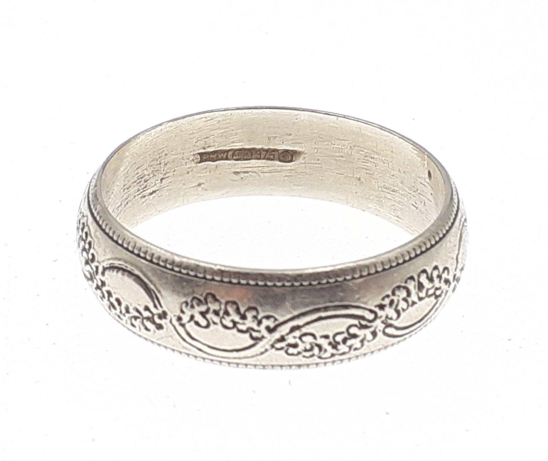 A 375 hallmarked white gold band. size R, weight 4.7g approx