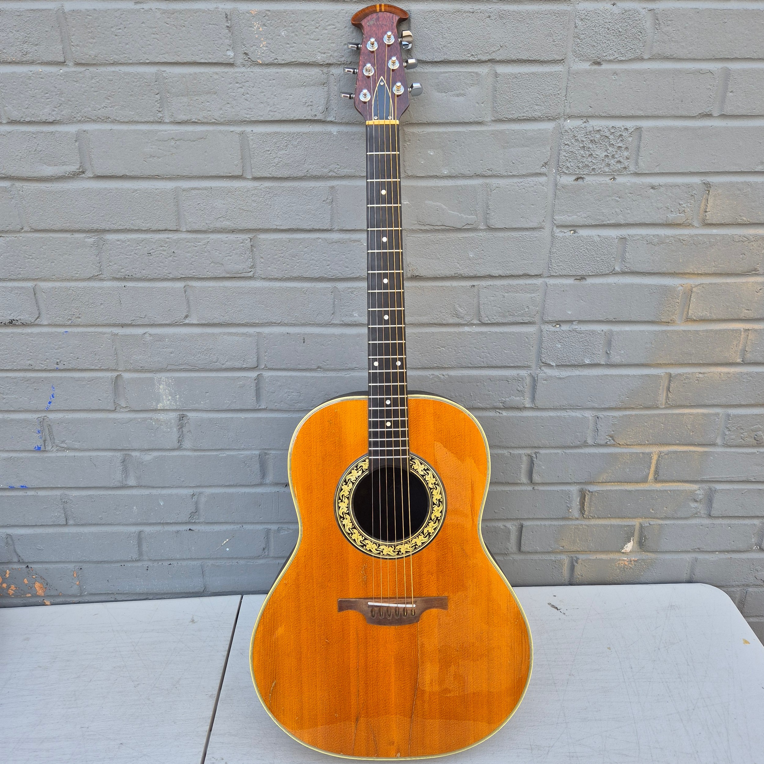 An Ovation Ballandeer Left Handed Acoustic Guitar in Case