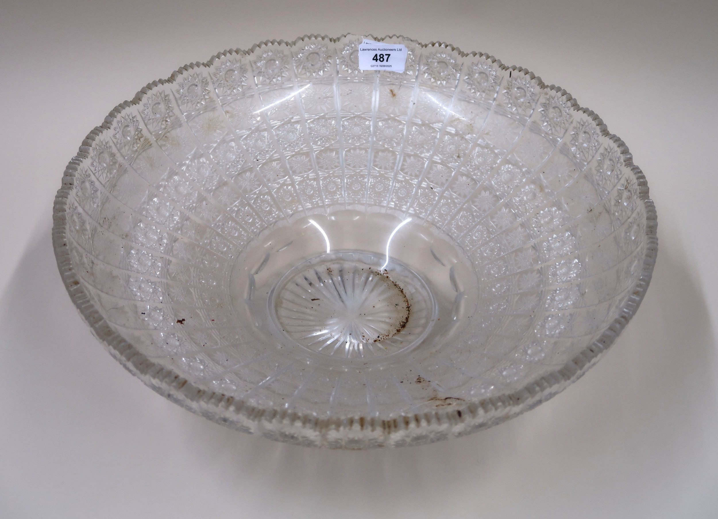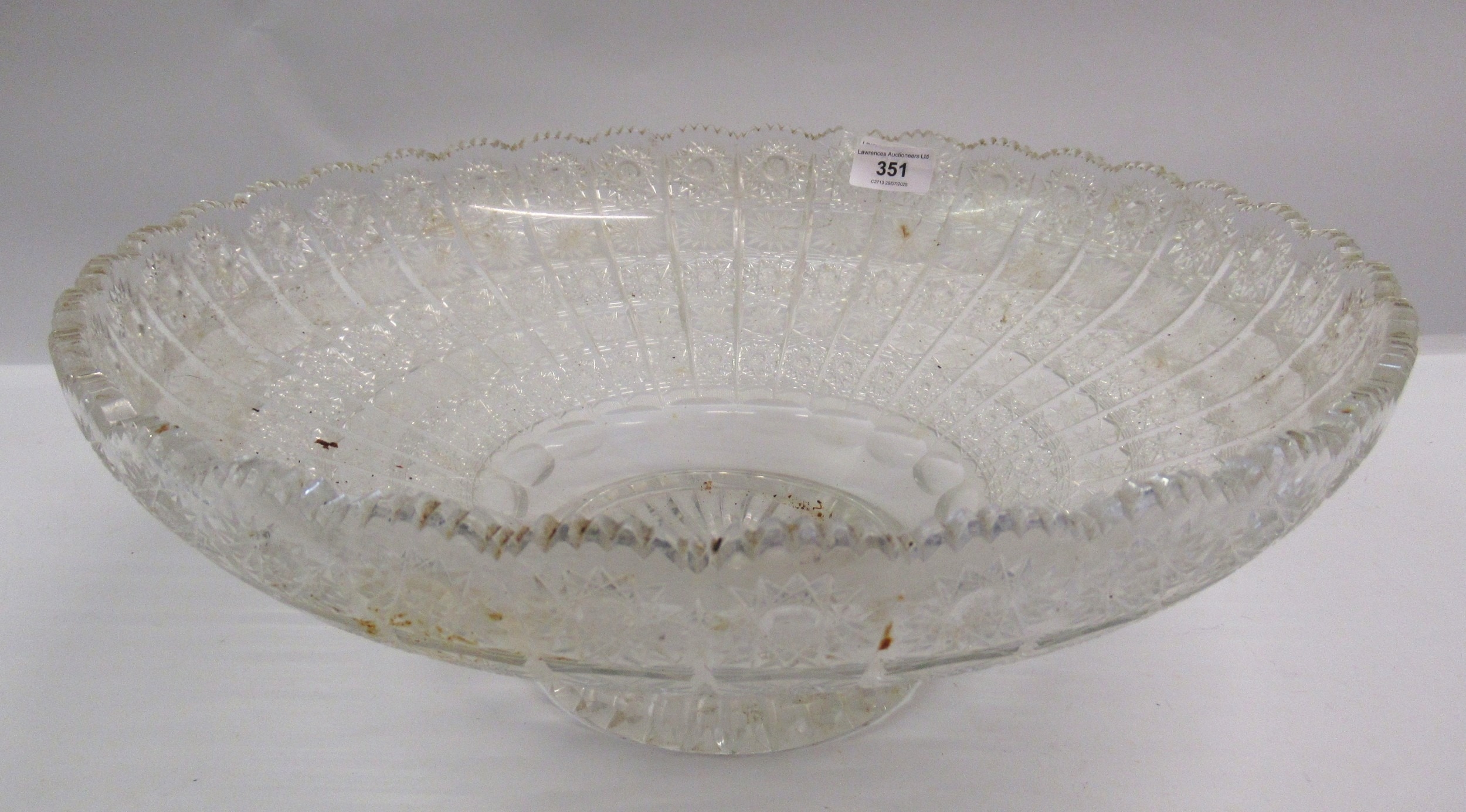 Heavy cut glass fruit bowl, 40cm diameter