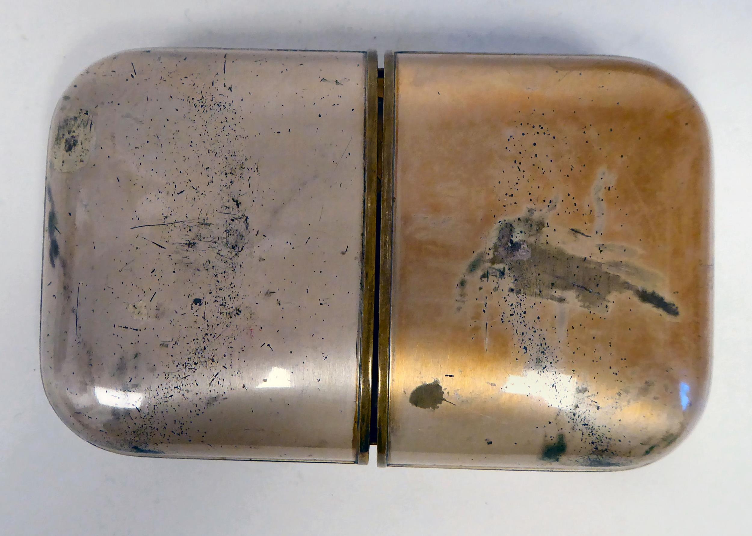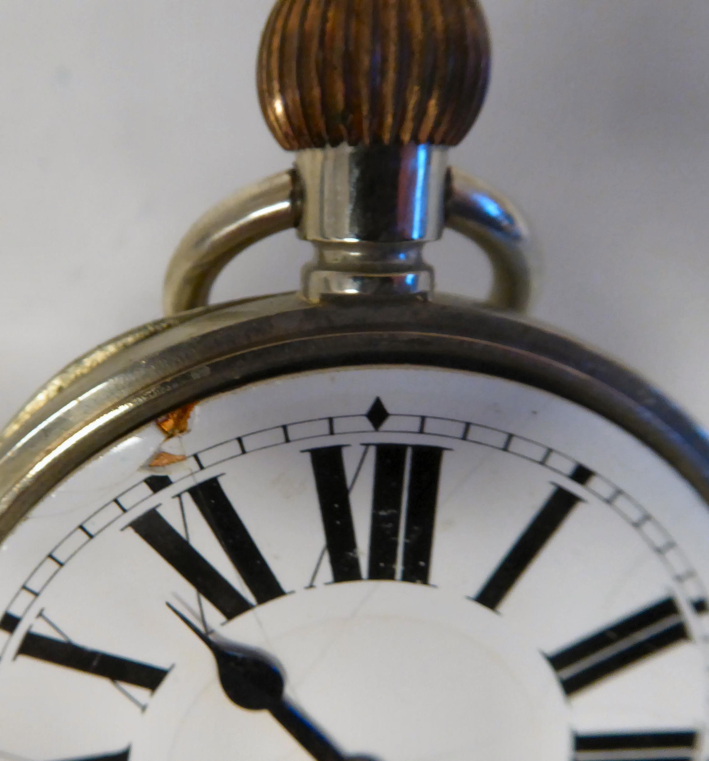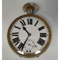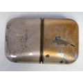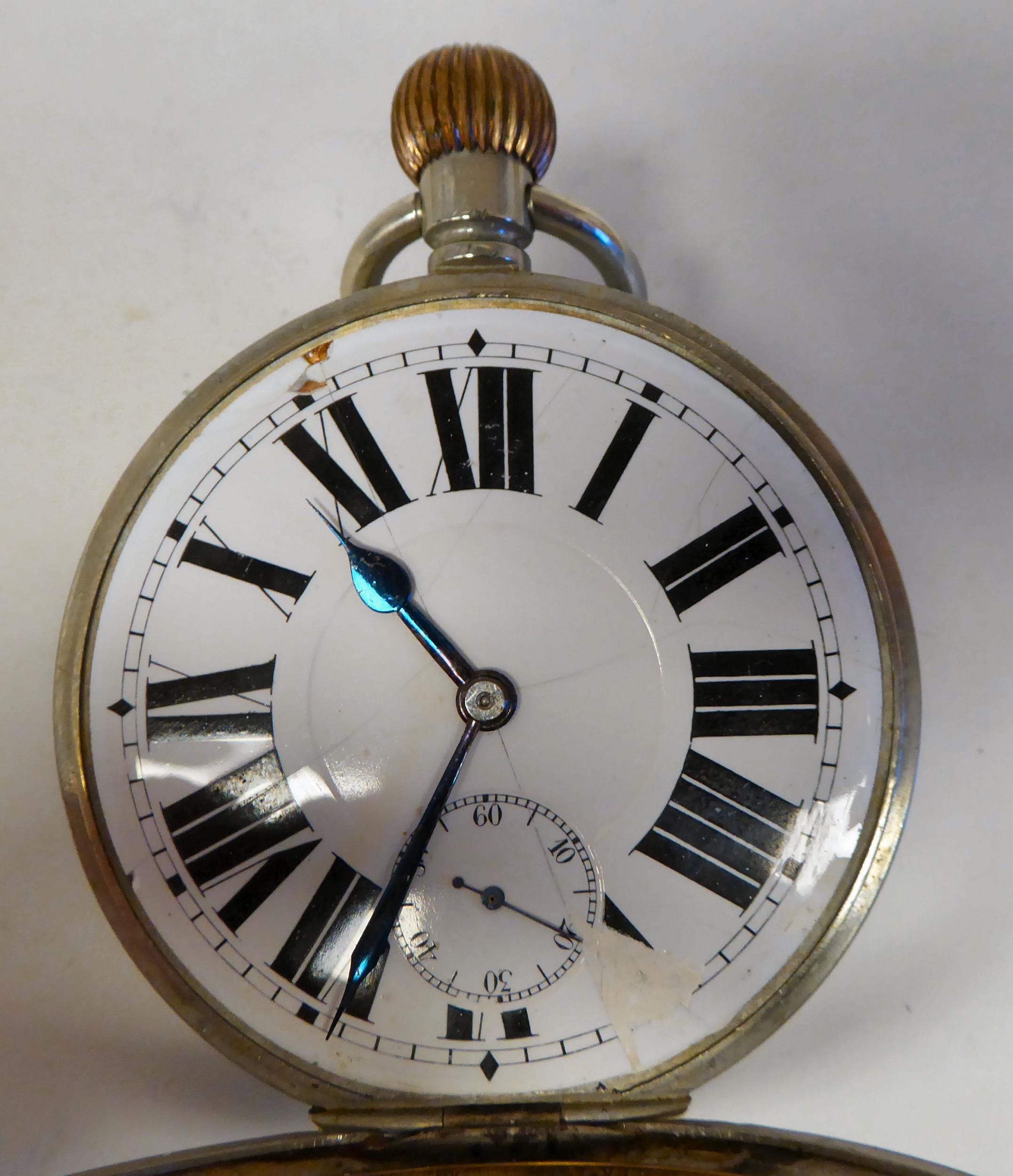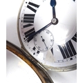 A Europa traveller's timepiece, having an integral sliding, two-part lacquered brass and coloured enamelled case, ornamented with stylised fish, the 7 jewel movement faced by an Arabic dial and an alarm; and a Goliath vintage traveller's timepiece, in a stainless steel case, faced by an enamelled Roman dial and subsidiary, in a moulded pigskin outer case