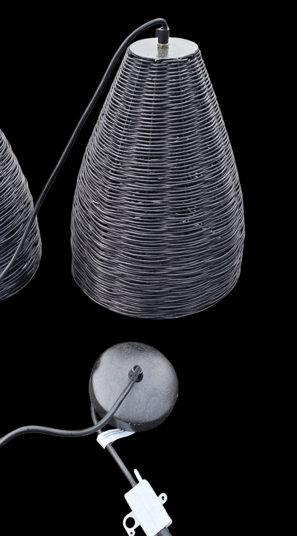 A NEW PAIR OF WICKER WOVEN CEILING LIGHTS