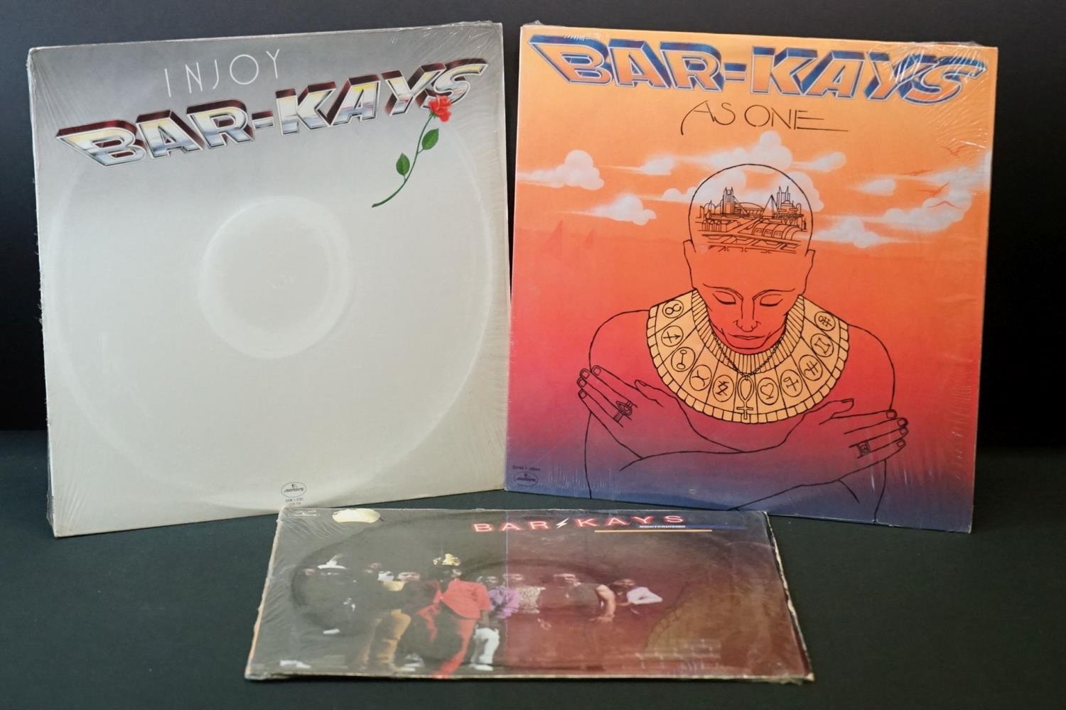 Vinyl - Bar Kays - 3 original USA albums. Nightcruising (1981 USA, Mercury, SRM-1-4028) VG+ (still in shrink) / EX (Appears Unplayed) + Printed Inner. As One (1980 USA, Mercury, SRM 1-3844) EX (Still in shrink) / EX (Appears Unplayed) + Printed Inner. Injoy (1979, USA Mercury, SRM-1-3781) EX (Still in shrink) / EX (Appears Unplayed) + Printed Inner