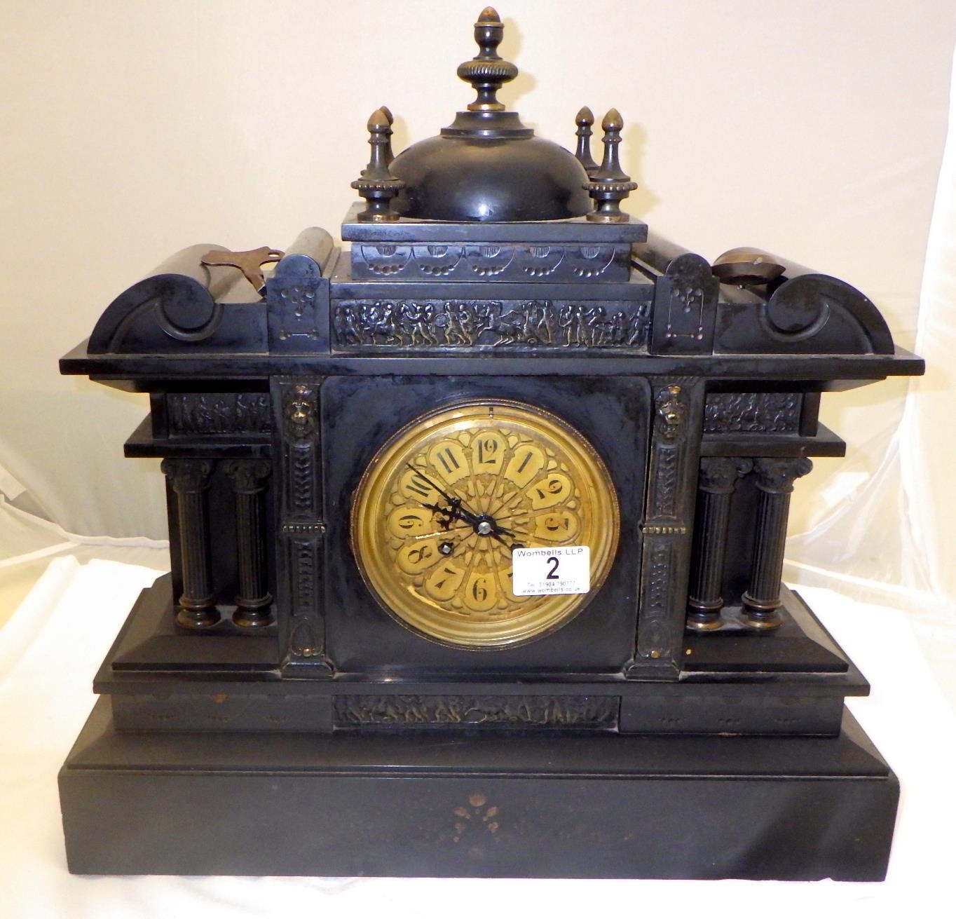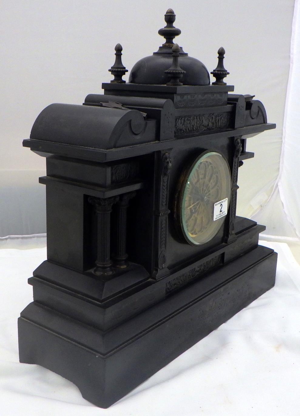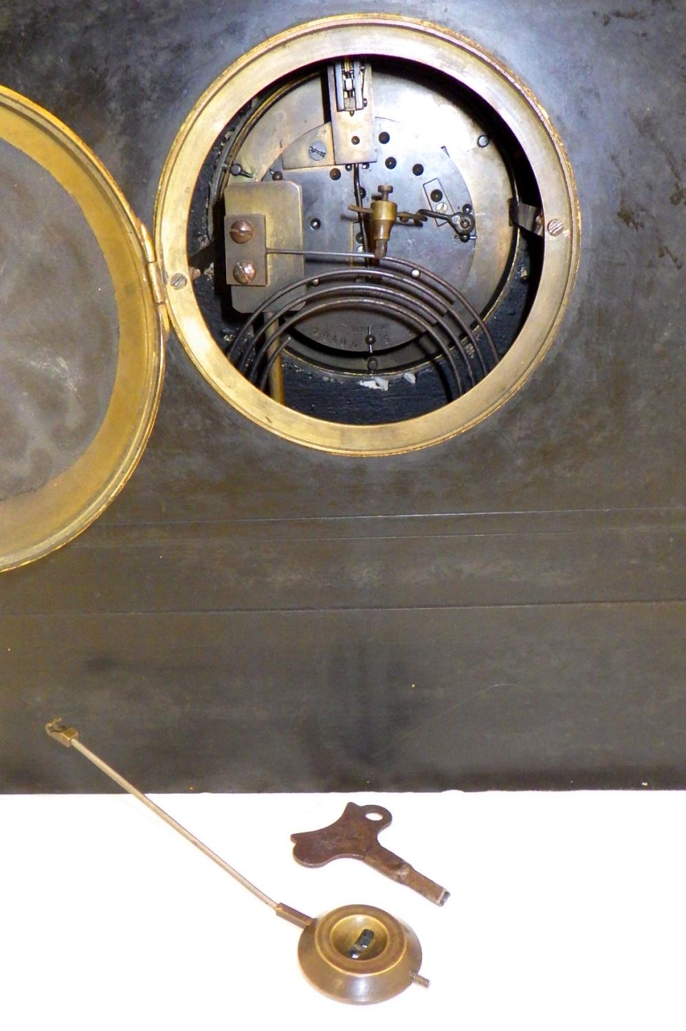 A 19thC slate mantle clock 45cm tall