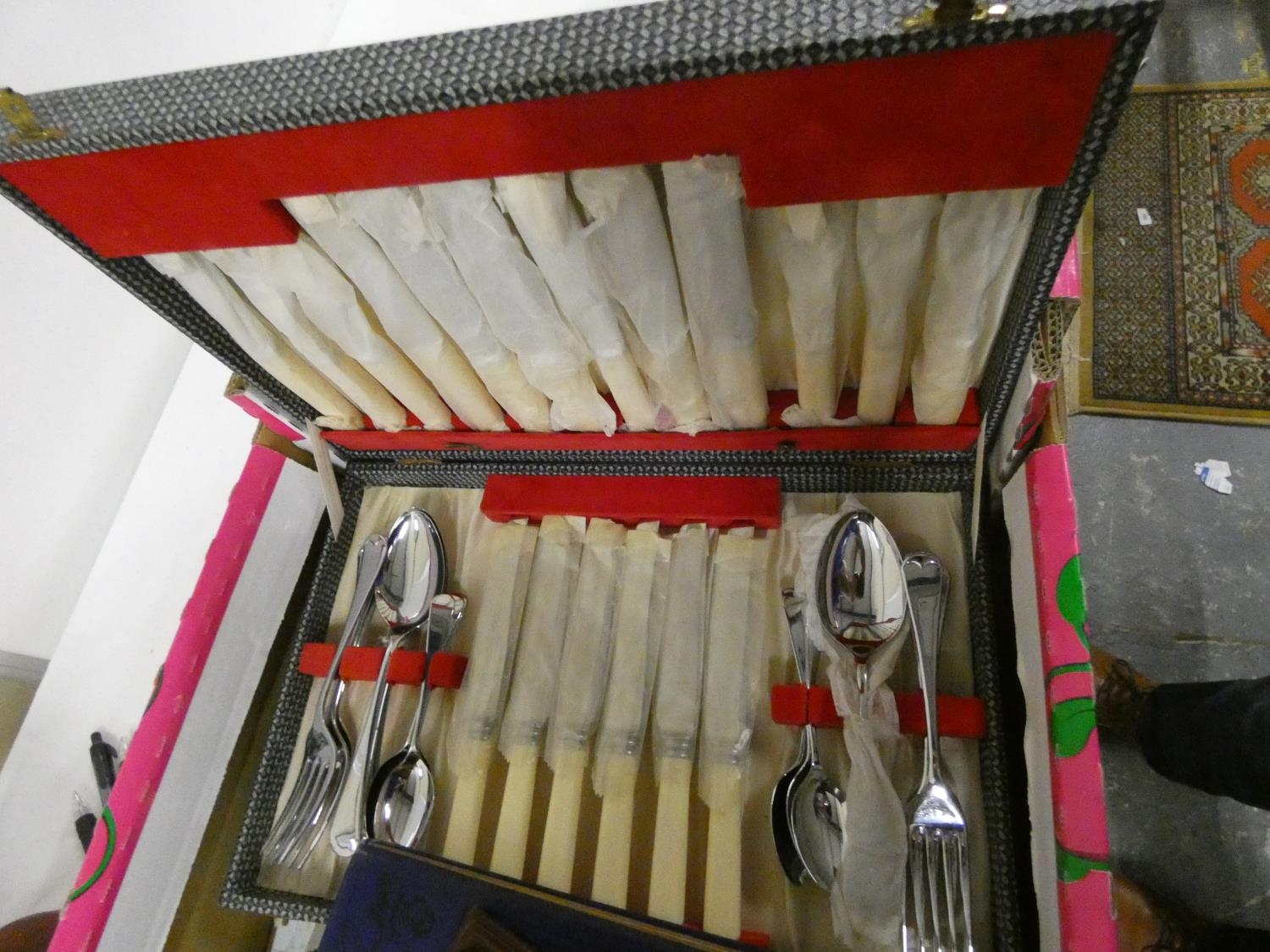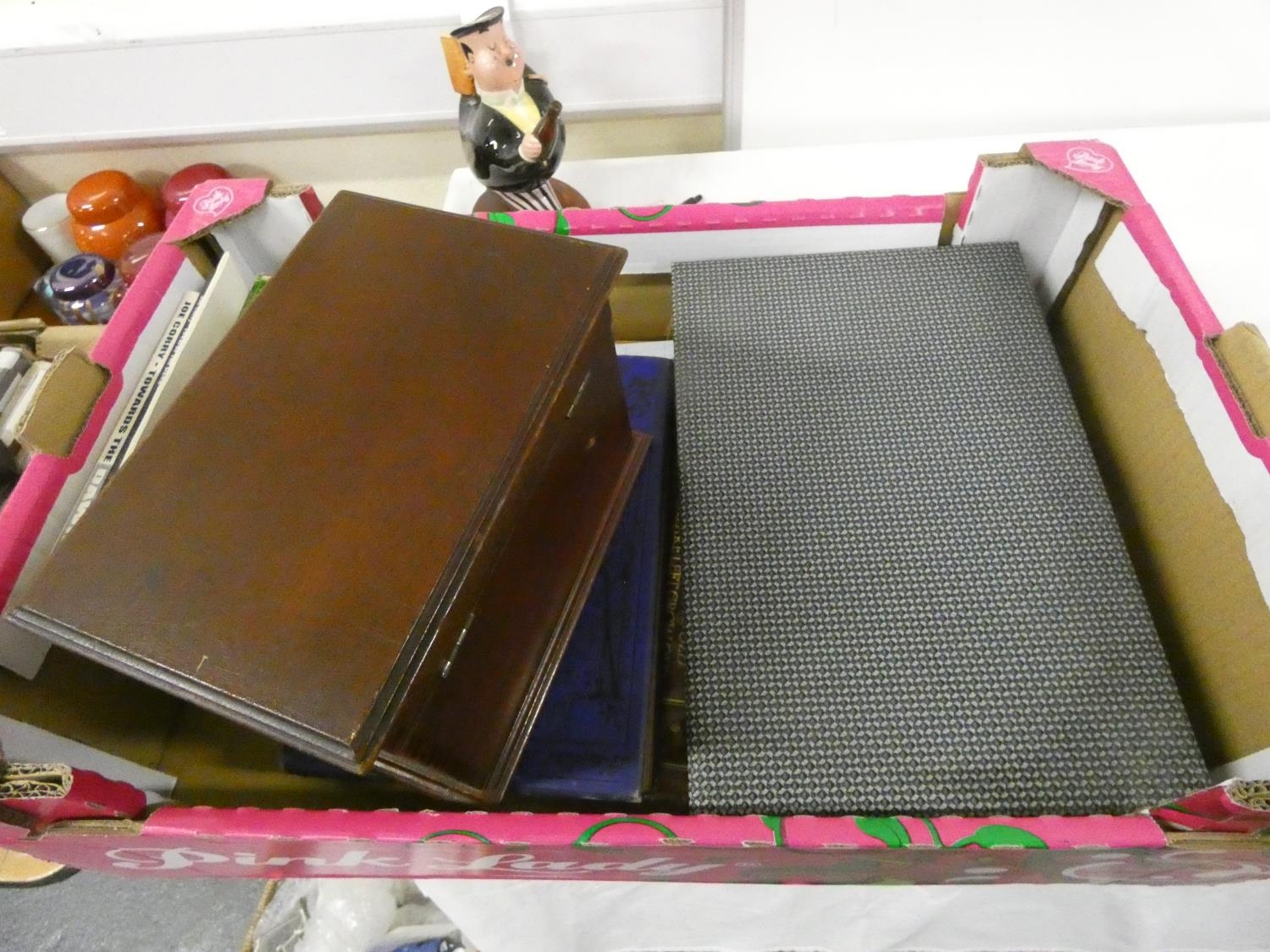 Box of books and cutlery.