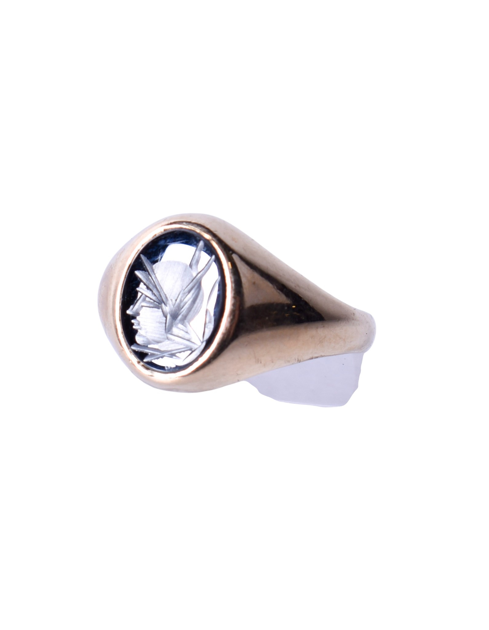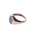 A 9ct gold and hematite signet ring. With engraved oval stone, hallmarked, size M, gross weight 3g.