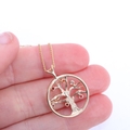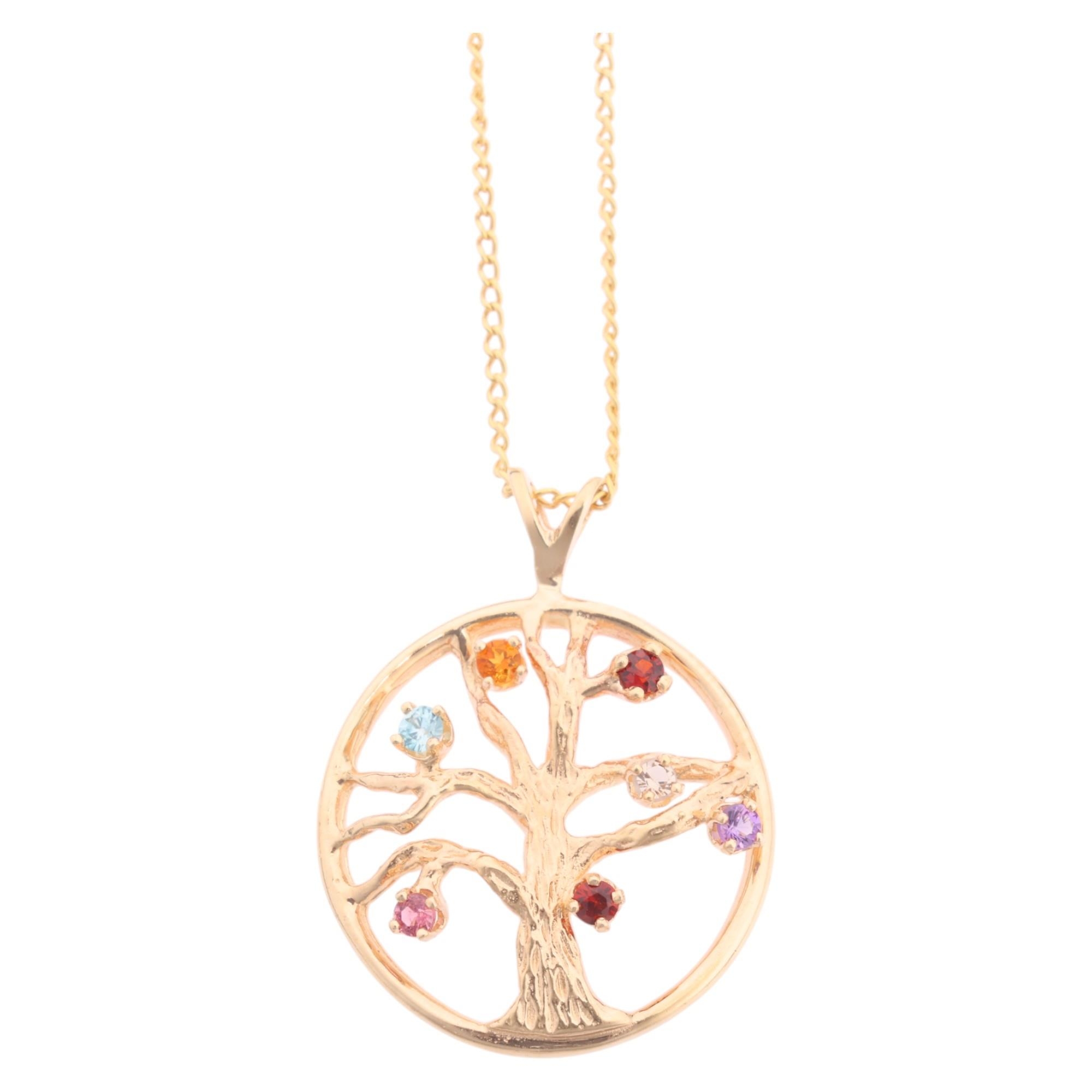 A 9ct gold gem set Tree Of Life pendant necklace, on 9ct fine curb link chain, pendant 26mm, chain 44cm, 4.1g