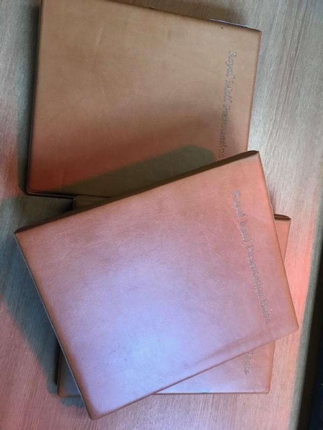 Three brown Royal Mail Presentation Pack Albums. (3)