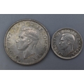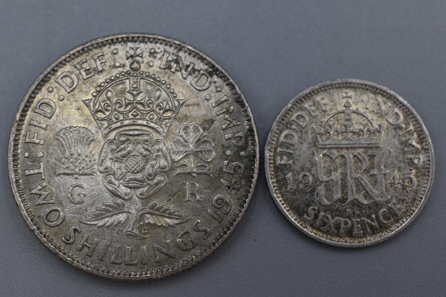 George VI Silver Two Shilling and Sixpence Coins (Dated 1945 )
