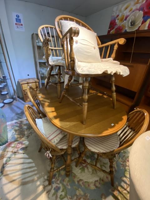 Yugoslavian oak dining table (76H 93W 95D cm) & 6 chairs inc. 2 carvers